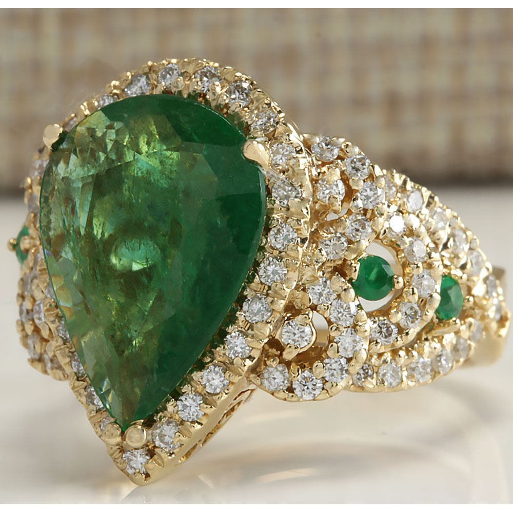 8.00 CTW Natural Emerald And Diamond Ring 18K Solid Yellow Gold