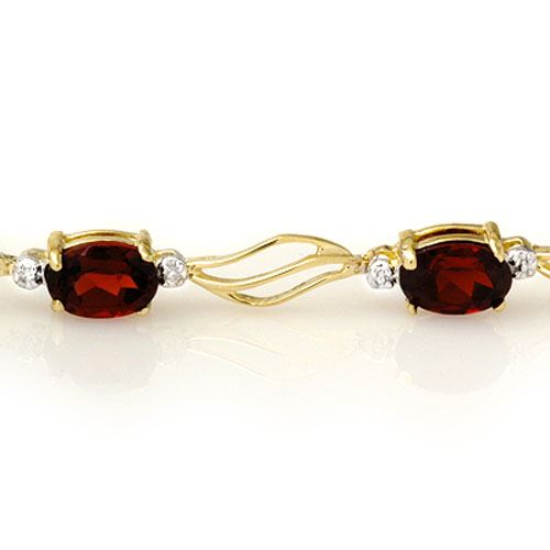 8.02 CTW Garnet & Diamond Bracelet Solid 10K Yellow Gold ---- Luxury Designer Brand Bracelet Appraised Retail Price at $2,200 ---- SKU Number US10818 10k Yellow gold Bracelet Size is 7 Inches, Bracelet measuring approx. 7" x 3/16", weighing in total approx. 5.9 grams. Made in the USA and is stamped 10k, Main stone 8 carat total weight containing 8 pieces of Saturated purplish Red color with AAA quality Oval shape cut Garnet , Stone #2 0.02 carat total weight containing 2 pieces of H-I color with VS/SI quality Round shape cut