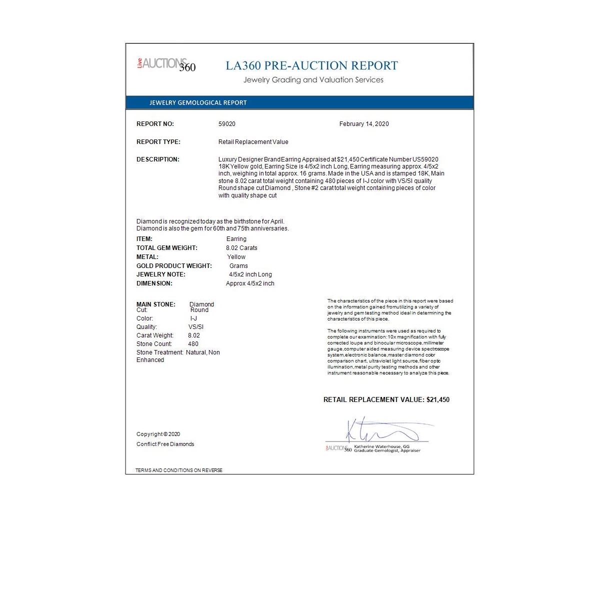 REF-573K3Y - SKU: 59020 ---- 8.02 ctw Diamond Earrings 18K Yellow Gold