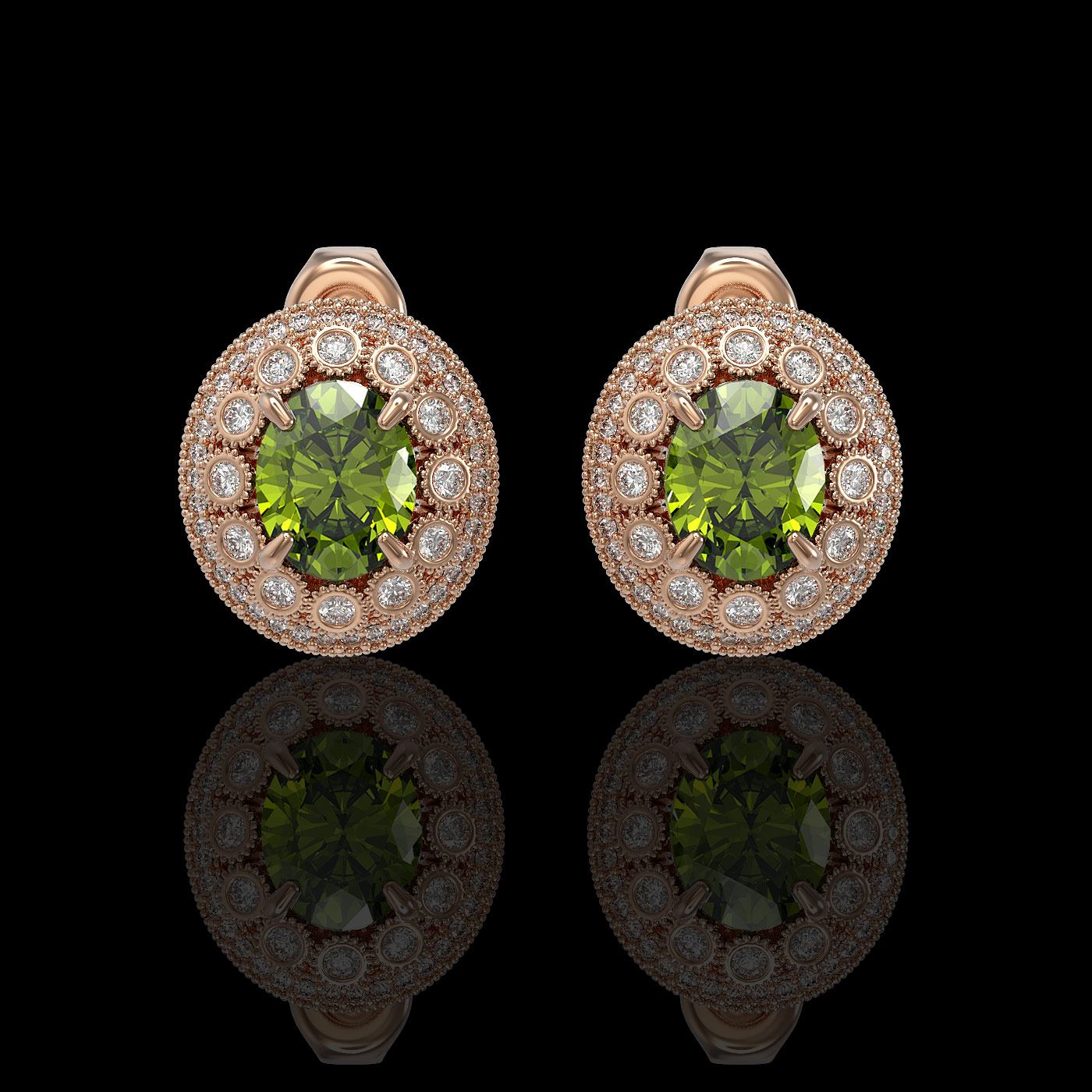 REF-223M6G - SKU: 43650 ---- 8.04 ctw Tourmaline & Diamond Victorian Earrings 14K Rose Gold