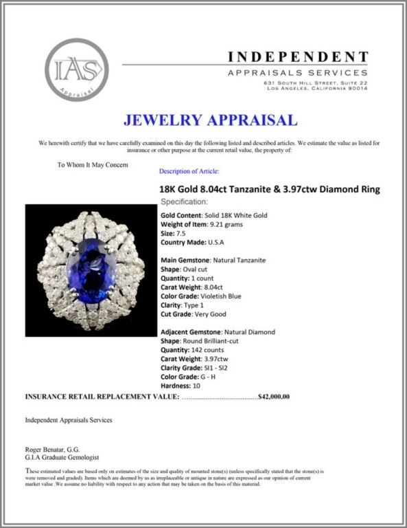 Regarding Appraised Jewelry and Loose Stones - Auctionfarm sends them out to a third party for Retail Replacement Value Appraisals, which are the most common. These types of evaluations are written for insurance needs. This would be the cost to replace the jewelry with an item of equal quality and kind, considered to be the current market price or the replacement value. This type of appraisal is done to protect you in the event of damage or loss of a valuable item. Our appraisals are conducted by independent 3rd Party appraisal firms that utilizes Certified GIA Gemologist. Appraisals should be used for verification of gemstone and/or metal weight, size, and grade only, not actual value. Appraisal value should be considered for insurance purposes only, not actual value, as price varies greatly from retail locations thru out the world. Items should not be purchased with the expectation to resell for appraisal price, or for profit.