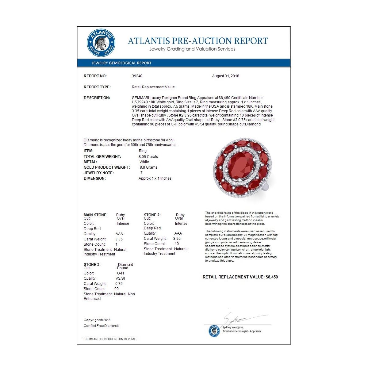 8.05 ctw Ruby & VS Diamond Ring 18K White Gold