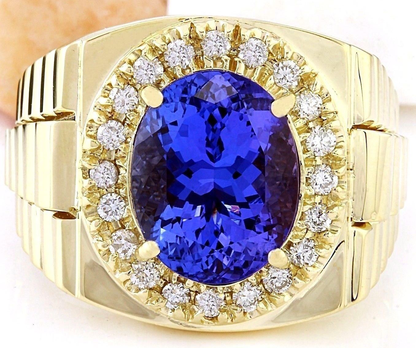 8.06 Carat Natural Tanzanite 18K Solid Yellow Gold Diamond Ring