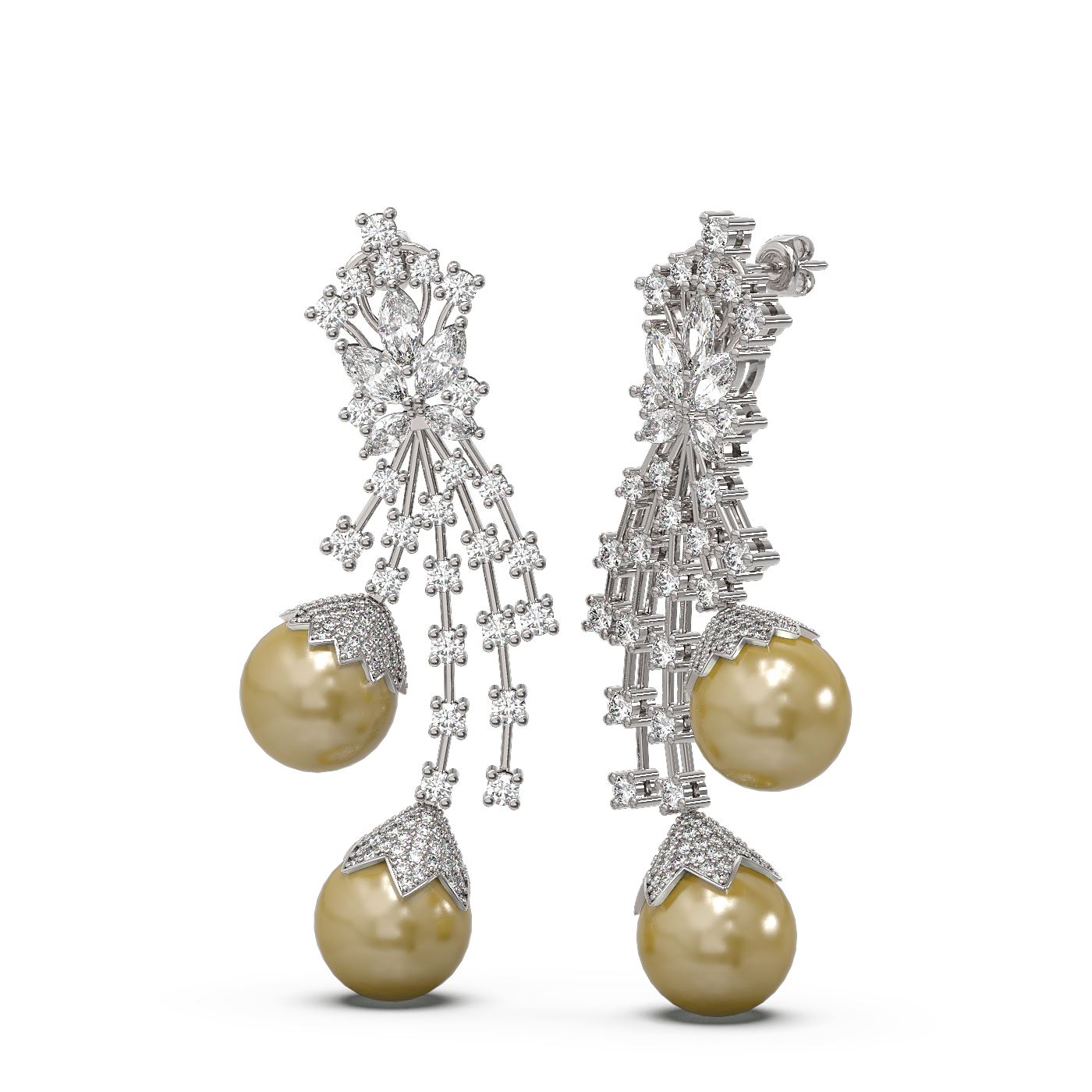 8.06 ctw Diamond and Pearl Earrings 18K White Gold