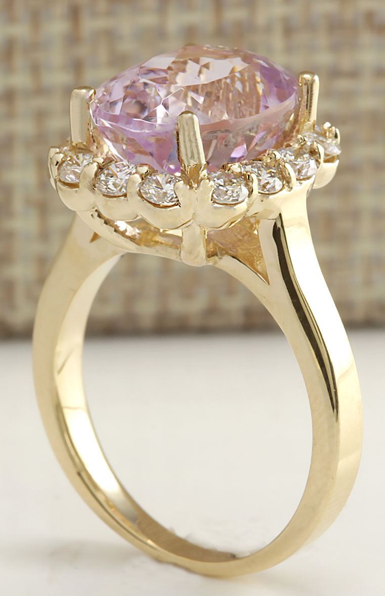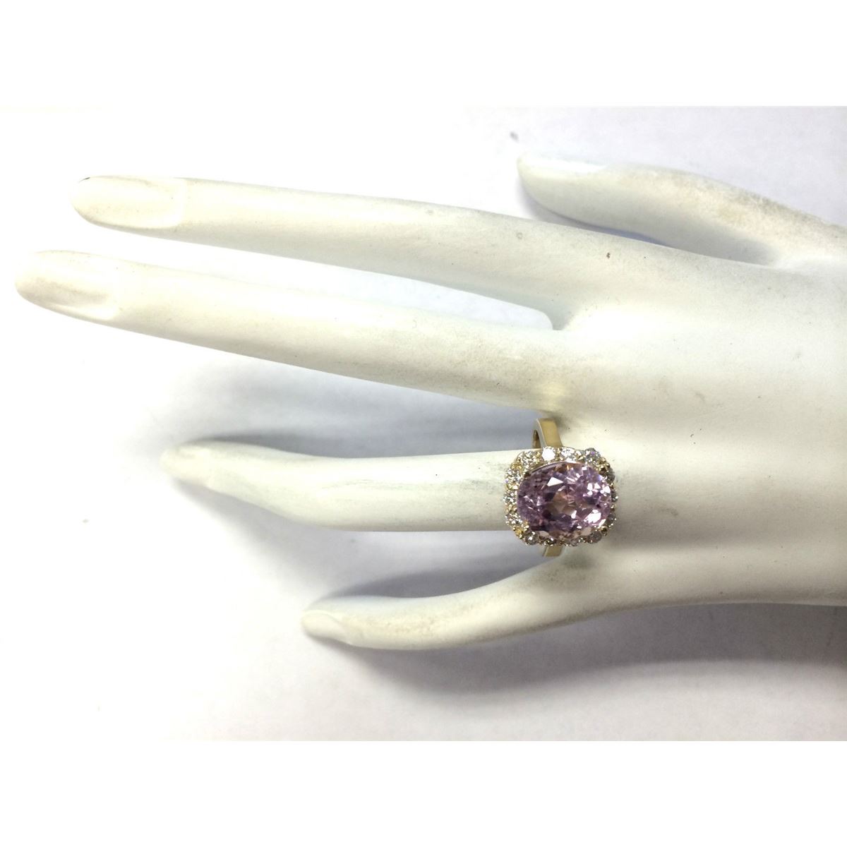 Stamped: 14K Ring Size: 6.25(FREE SIZING AVAILABLE) Total Ring Weight: 5.5 Grams Diamond Weight: Total natural diamond weight is .85carat. SI1-SI2 clarity / G-H color Natural Kunzite Weight is 7.21ctw (Measures: 11.92x9.90mm) Face Measures: 14.80x13.20mm Main stone color: Pink [SKU:702469]