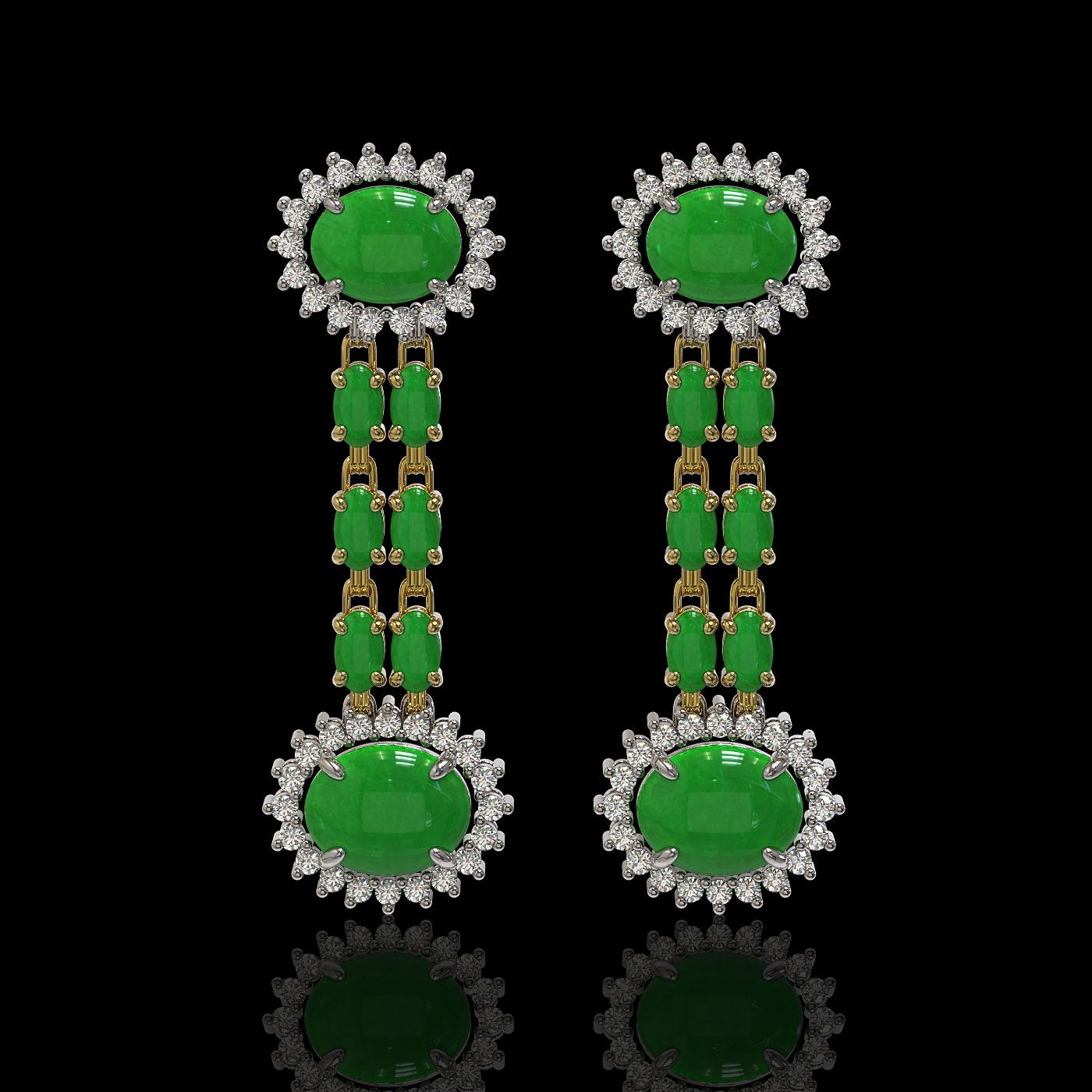 REF-144A8N - SKU: 44338 ---- 8.07 ctw Jade & Diamond Earrings 14K Yellow Gold