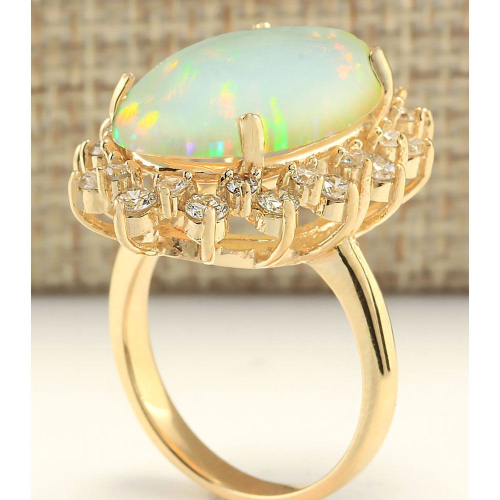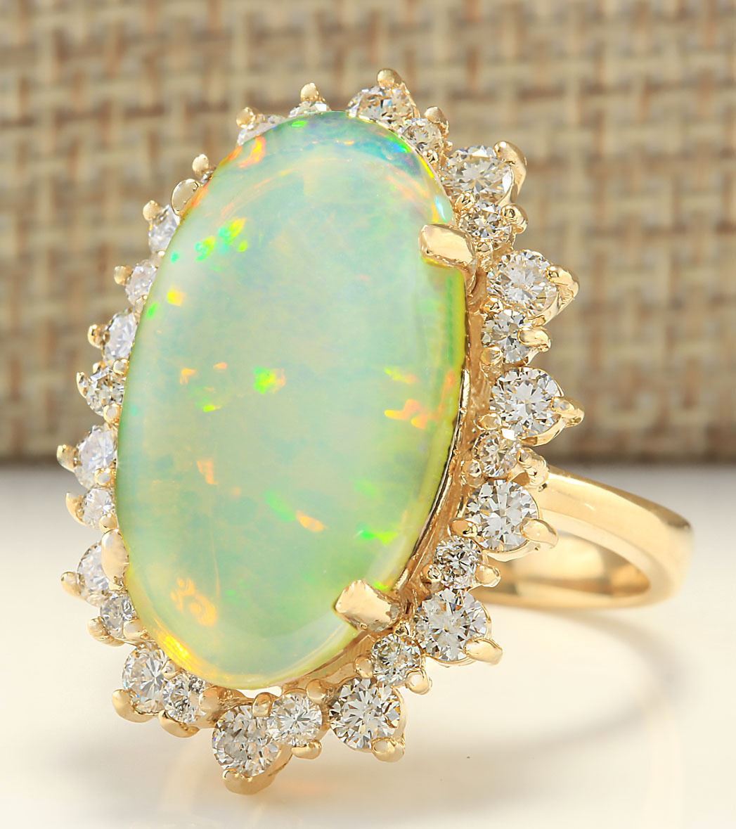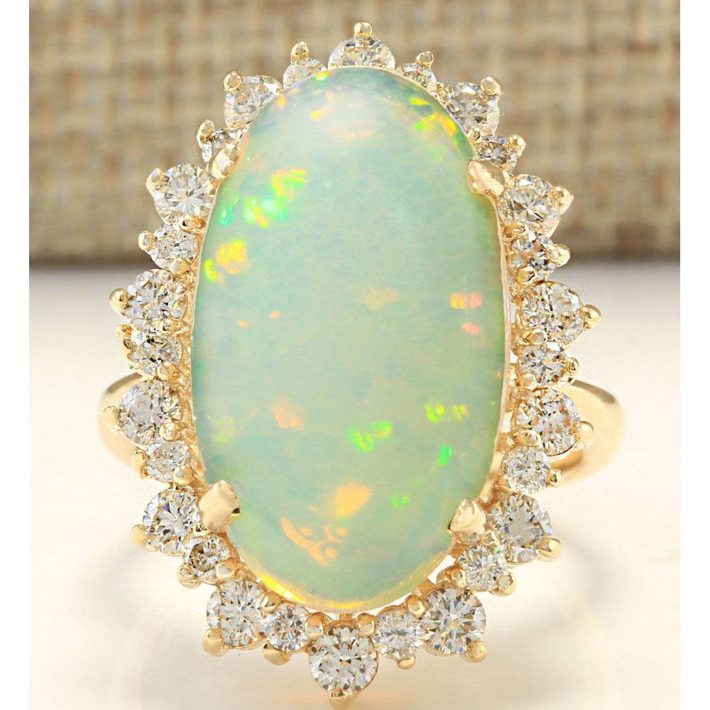 8.09 CTW Natural Opal And Diamond Ring In 18K Yellow Gold
