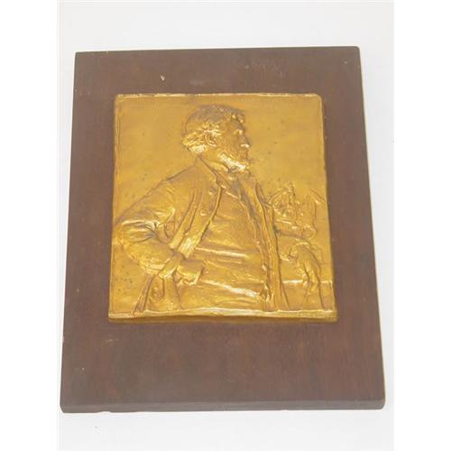 8 1/2" BRONZE PLAQUE AUGUSTUS ST. GAUDENS MOUNTED ON WOODEN PLAQUE-GORHAM FOUNDERS MARK BY MARY MEARS, COPYRIGHTED 1916 (8 1/2" X 7 1/4"-BRONZE ONLY) - NORMAL WEAR
