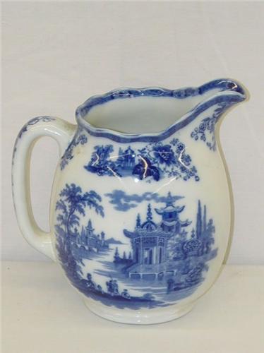 8 1/2" FLOW BLUE MADRAS PATTERN BULBOUS PITCHER BY ROYAL DOULTON