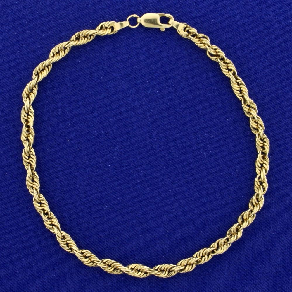 In 10k yellow gold, 3.7mm wide with lobster clasp. 7.3g.