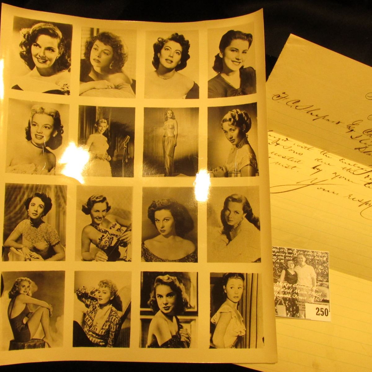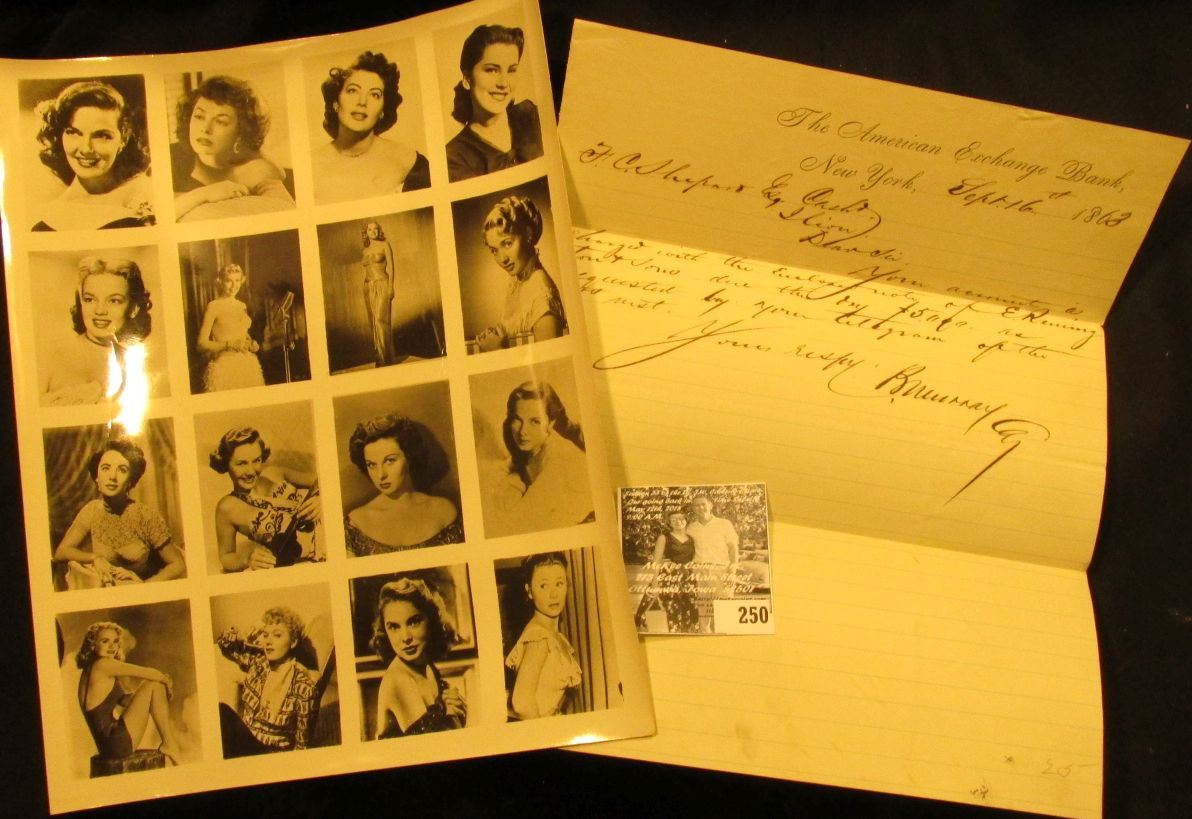 8 1/2" x 11" Studio Black and white photograph of Debra Paget, Ava Gardner, Jane Russell, Doris Day, Susan Hayward, Debbie Reynolds, Shelly Winters, and many more, names on back of single photo with multiple pictures; & Sept. 16th, 1863 ; Civil War letter on stationery from "The American Exchange Bank".