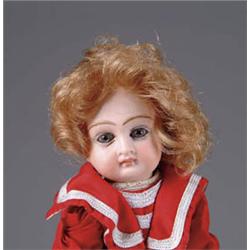 8-1/2” CLOSE-MOUTH BELTON. Belton on a five piece composition body with molded shoes and socks. This doll has blue set eyes and is wearing a newer red sailor’s outfit and matching hat. Rear of head is marked “104”. CONDITION: Overall condition is excellent. 1-2286
