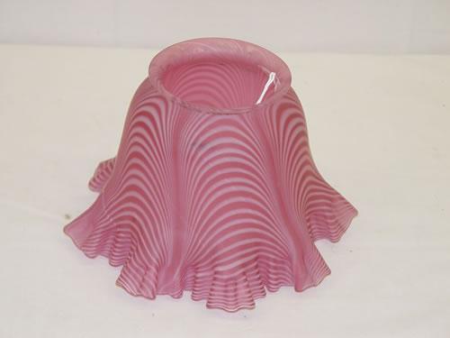 8 1/4" CRANBERRY GLASS SHADE W/ WHITE OPALESCENT LOOPING-FROSTED FINISH (POSSIBLY SANDWICH)(5 1/2" T X 8 1/4" W, 3 7/8" AT OPENING) - WEAR