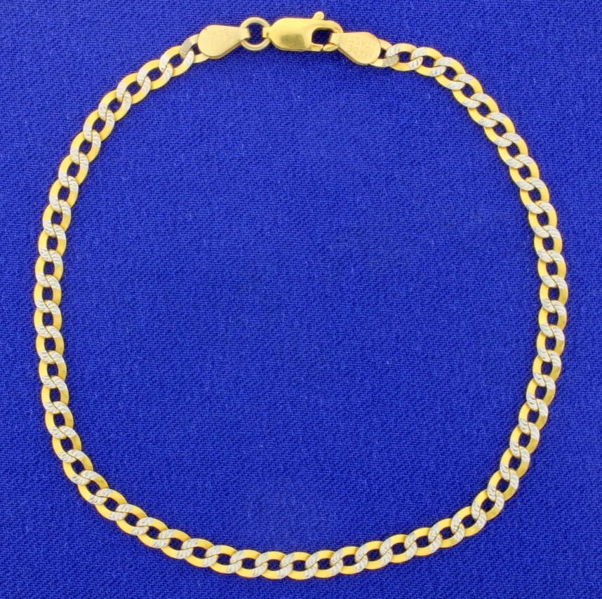 In 10K yellow & white gold, it is 3.5mm wide. 3.5g