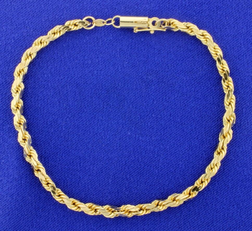 This 10K yellow gold bracelet is 3.2mm thick and has a safety clasp. 2.9g