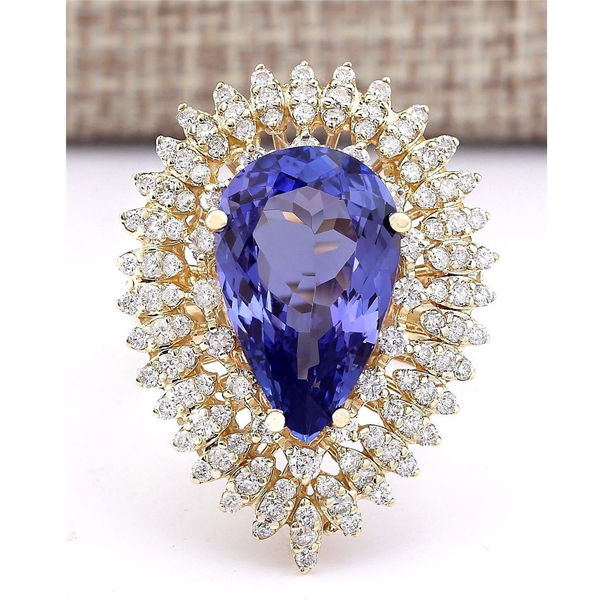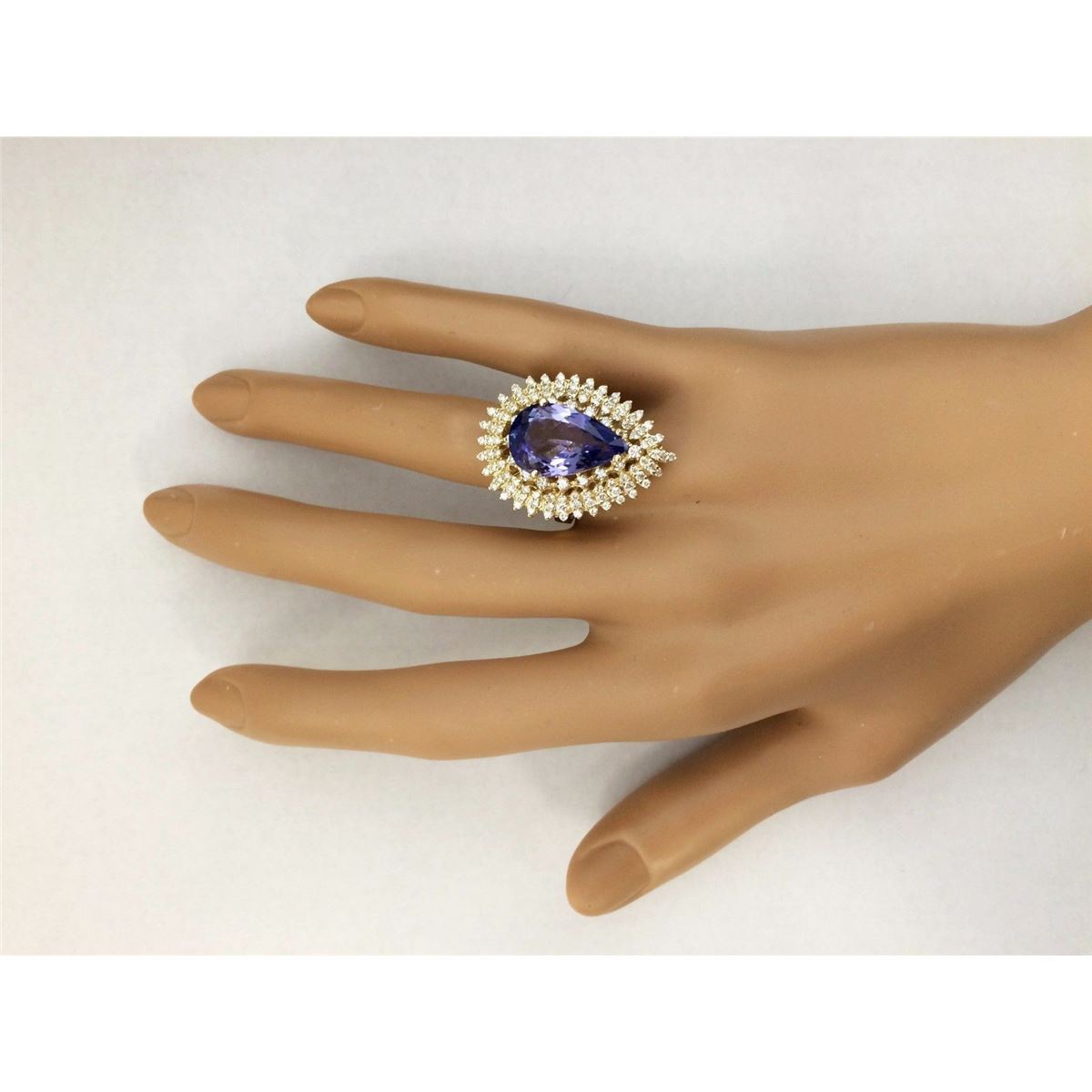 Stamped: 14K Ring Size: 7.25 Total Ring Weight: 10 Grams Diamond Weight: Total natural diamond weight is 1.60carat. SI1-SI2 clarity / G-H color Gemstone Weight: Total Natural Tanzanite Weight is 6.50ctw (Measures: 16.85x10.55mm) Main Stone Color: Blue Face Measures: 29.52x22.15mm SKU: [704182]