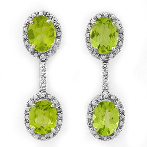 REF-80A5X -10312 ---- 8.10 CTW Peridot & Diamond Earrings 14K White Gold ---- Luxury Designer Brand Earrings Appraised at $5,750 Certificate Number US10312 14k White gold, Earrings Size is 1 1/4 Inches, Earrings measuring approx. 3/8" x 1 1/4", weighing in total approx. 5.499 grams. Made in the USA and is stamped 14k, Main stone 8 carat total weight containing 4 pieces of Intense Green color with AAA quality Oval shape cut Peridot , Stone #2 0.1 carat total weight containing 8 pieces of H-I color with VS/SI quality Round shape cut Diamond