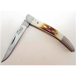 3" closed. Nickel silver bolsters. Stainless clip blade. Second cut bone handles.