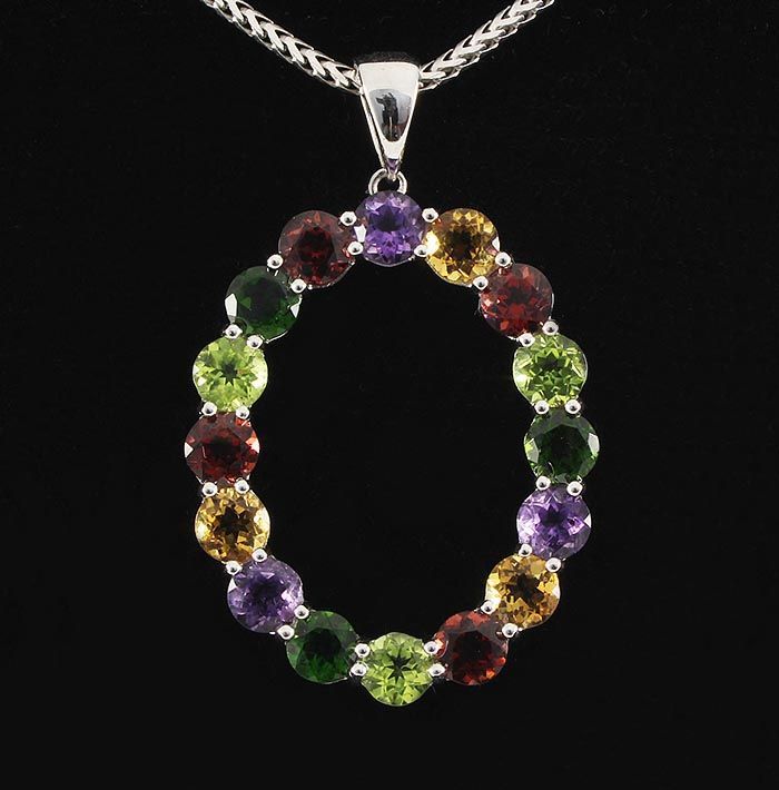 1.78 Inches Long Oval Design Pendant with Multi-color Round 5mm Semi Precious Gemstone