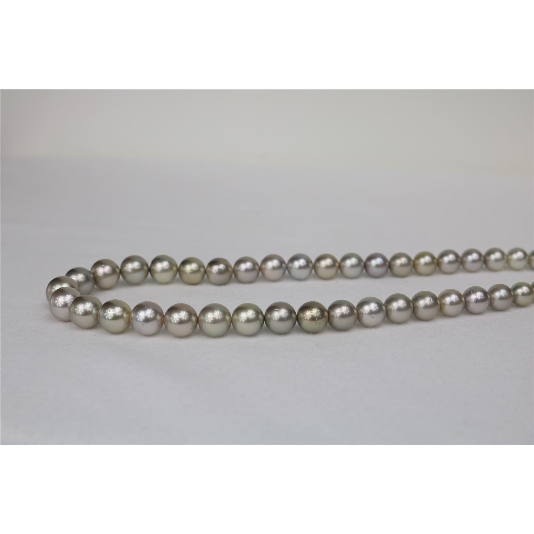Tahitian Purple Silver Round Necklace, AAA Luster, 18 inches hand knotted with gold fishhook clasp #CP43