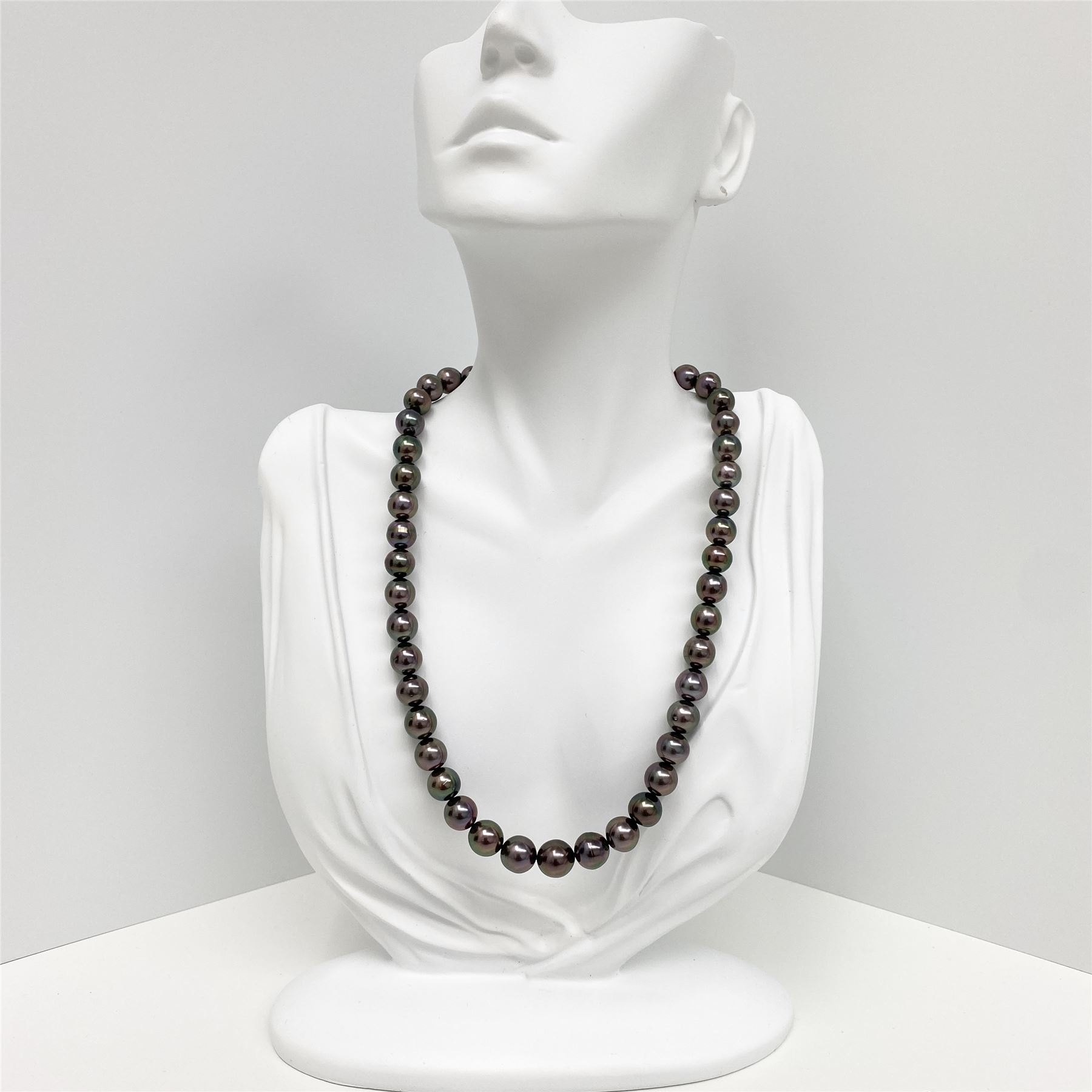 AAA Quality, Tahitian Aubergine Near-Round Pearl Necklace, 18 inches hand-knotted with gold fish-hook clasp #CP82