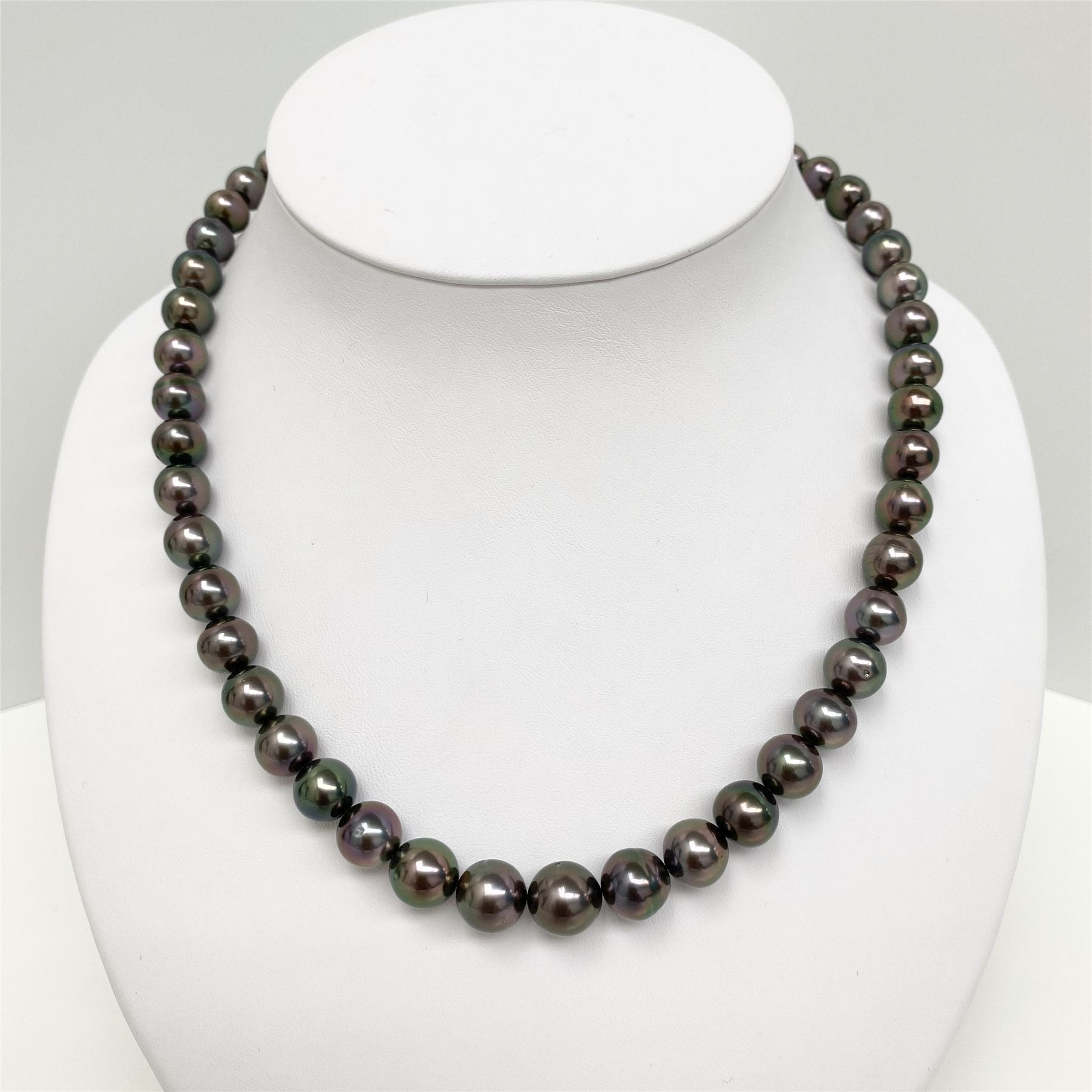 8-10mm Tahitian Aubergine Near-Round Pearl Necklace with Gold Clasp