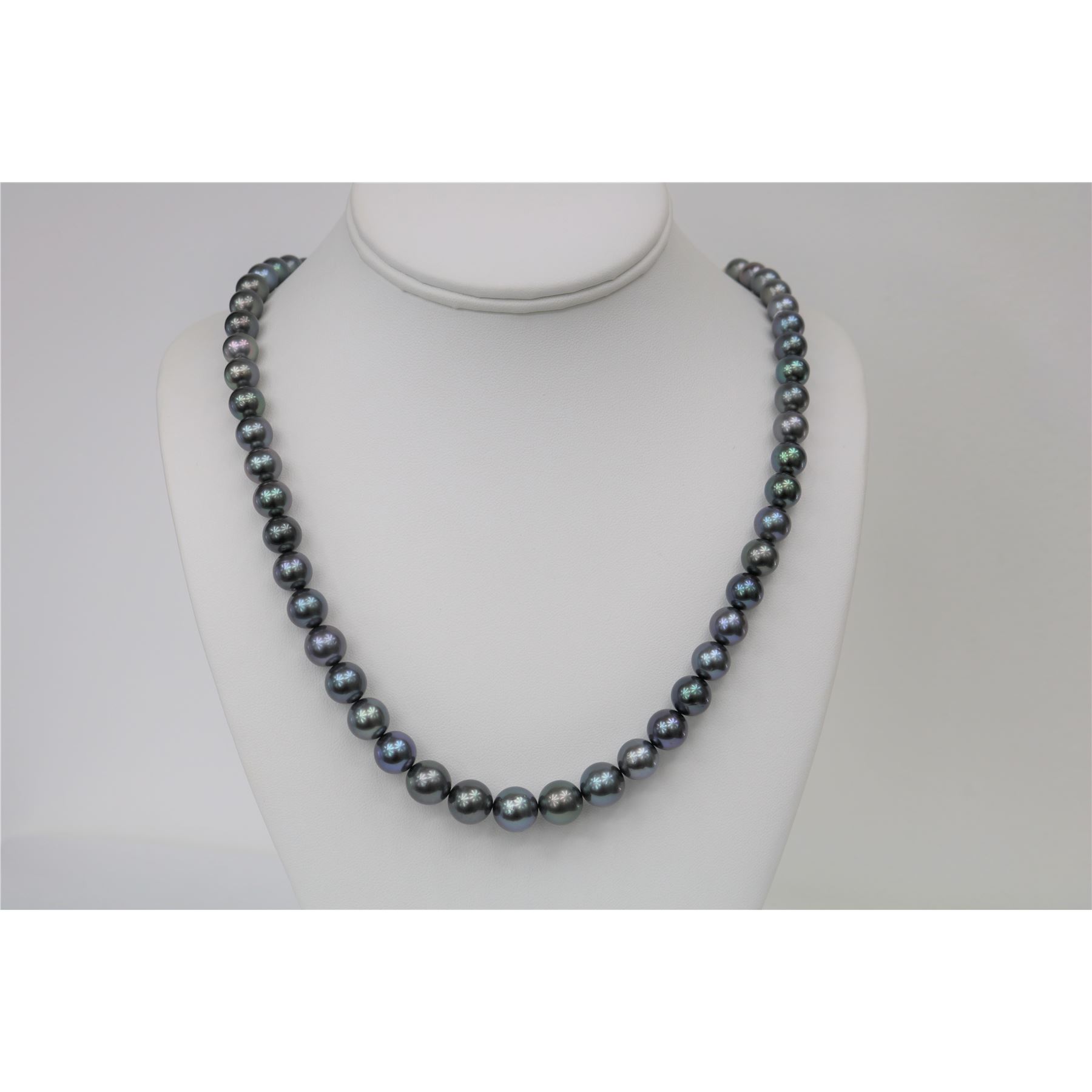 8-10mm Tahitian Dark/Blue Round Necklace with Gold Clasp