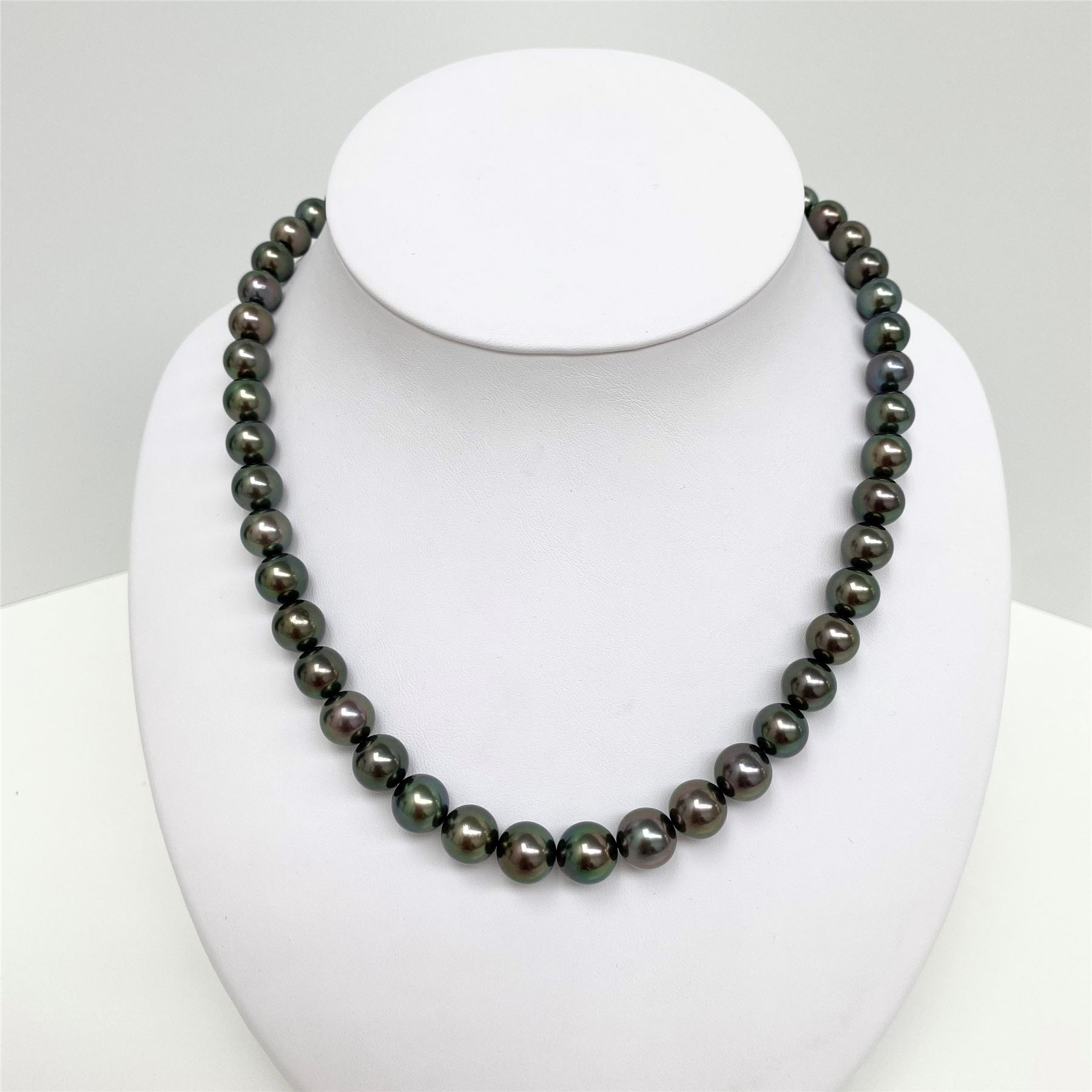 8-10mm Tahitian Dark Multicolor Round Pearl Necklace with Gold Clasp