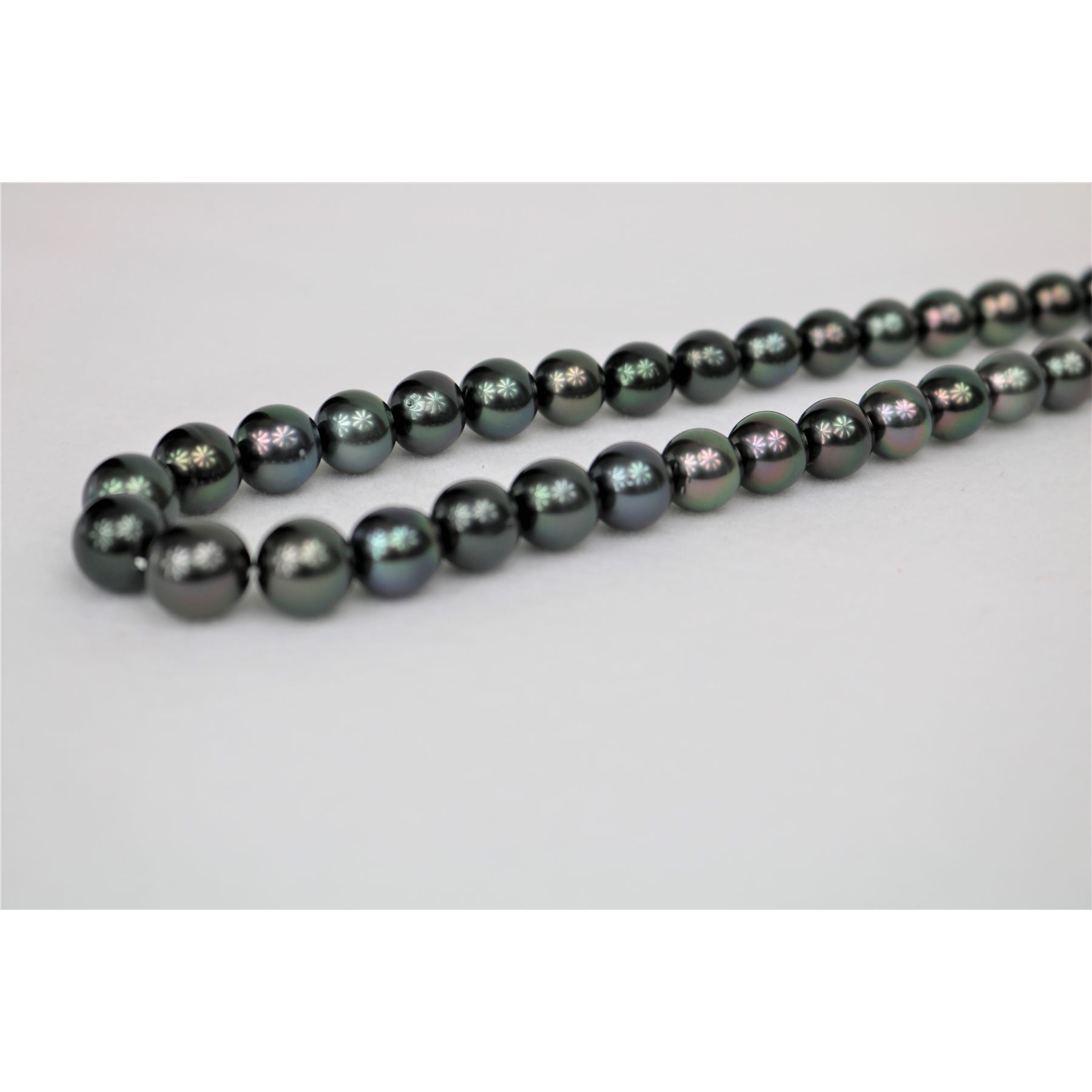 AAA Luster, Tahitian Round/Near Round Peacock Necklace, 18 inches hand knotted with gold fishhook clasp #CP22