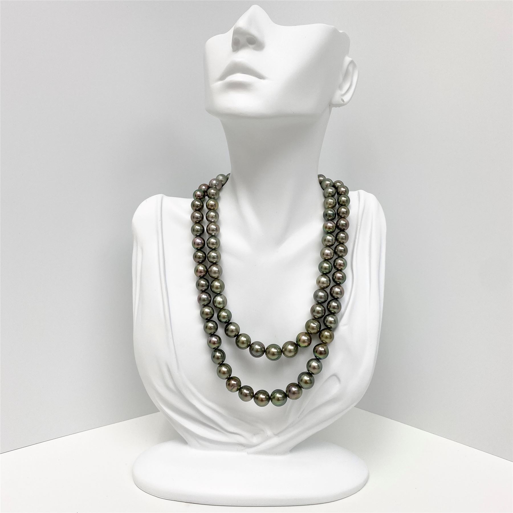 AAA Quality, Tahitian Pistachio Green Near-Round Double-Strand Pearl Necklace, 36 inches hand-knotted with gold fish-hook clasp #CP98