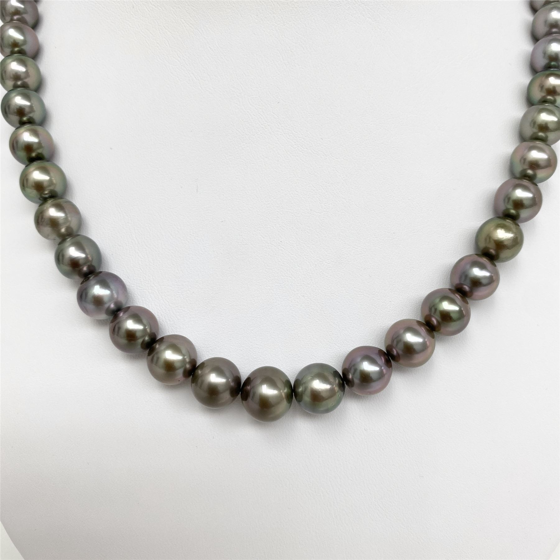 AAA Quality, Tahitian Silvery Lavender Near-Round Pearl Necklace, 18 inches hand-knotted with gold fish-hook clasp #CP69