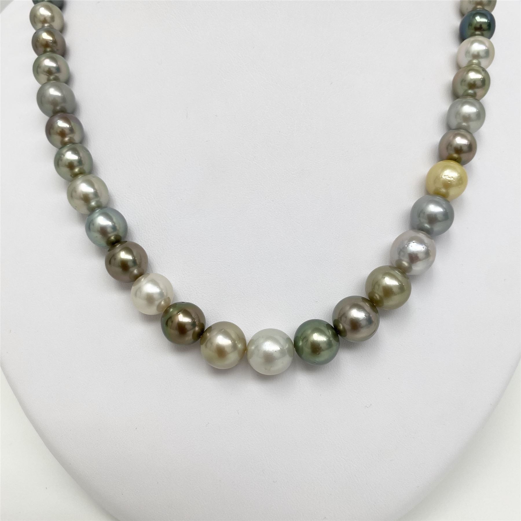 AAA Quality, Tahitian Silver Multicolor Round/Near-Round Pearl Necklace, 18 inches hand-knotted with gold fish-hook clasp #CP85