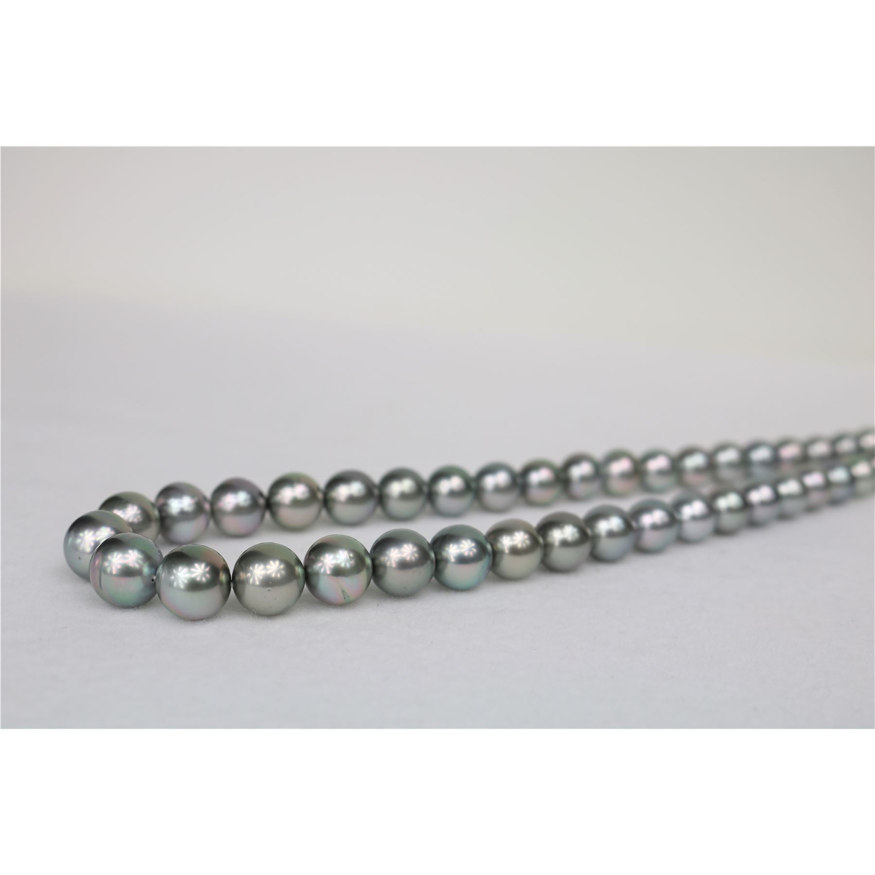 AAA Luster, Platinum-Silver Color Tahitian Round Pearl Necklace, 18 inches hand knotted with gold fishhook clasp #CP39