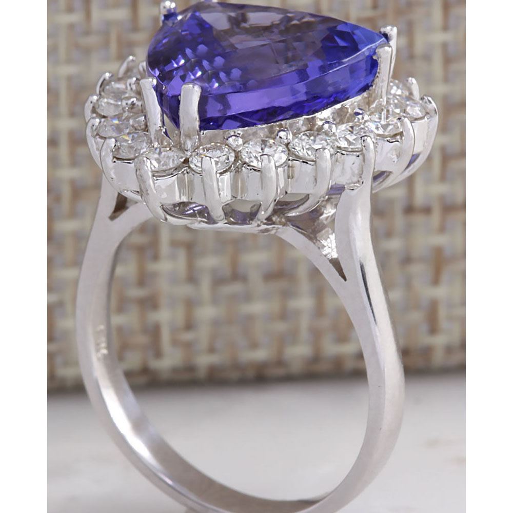 8.12 CTW Natural Blue Tanzanite And Diamond Ring In 14K White Gold