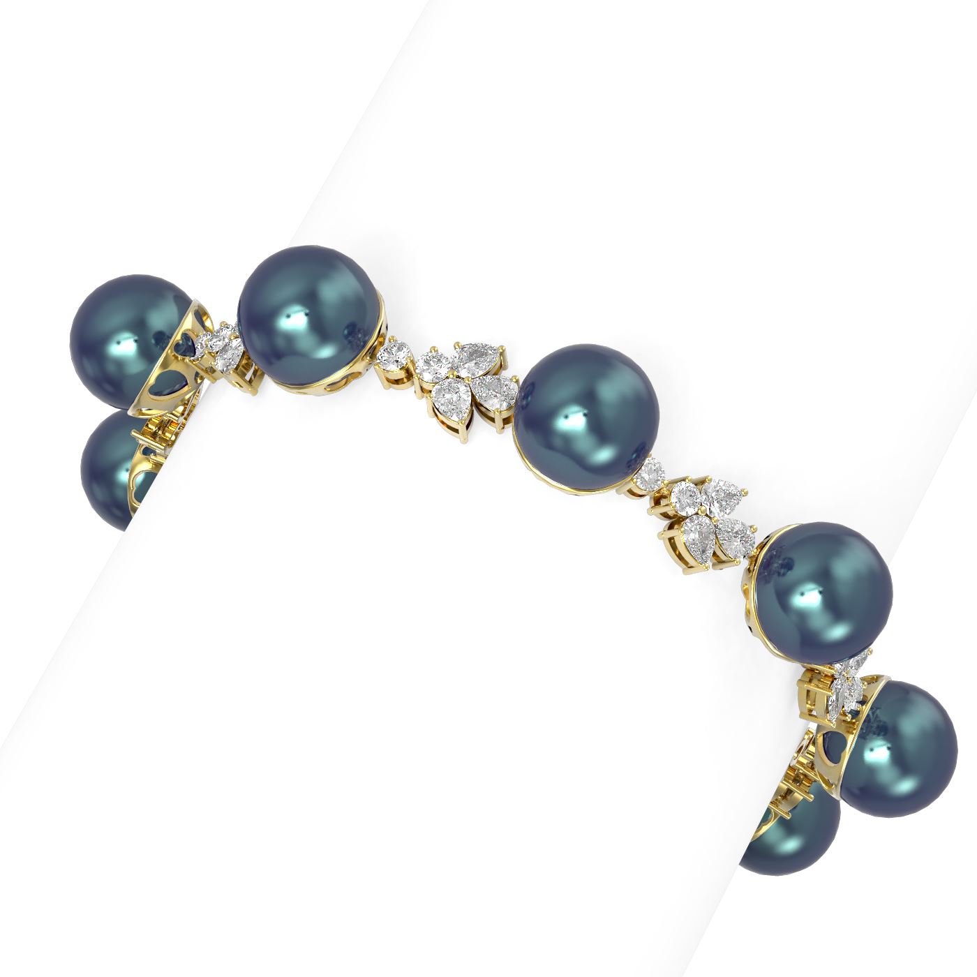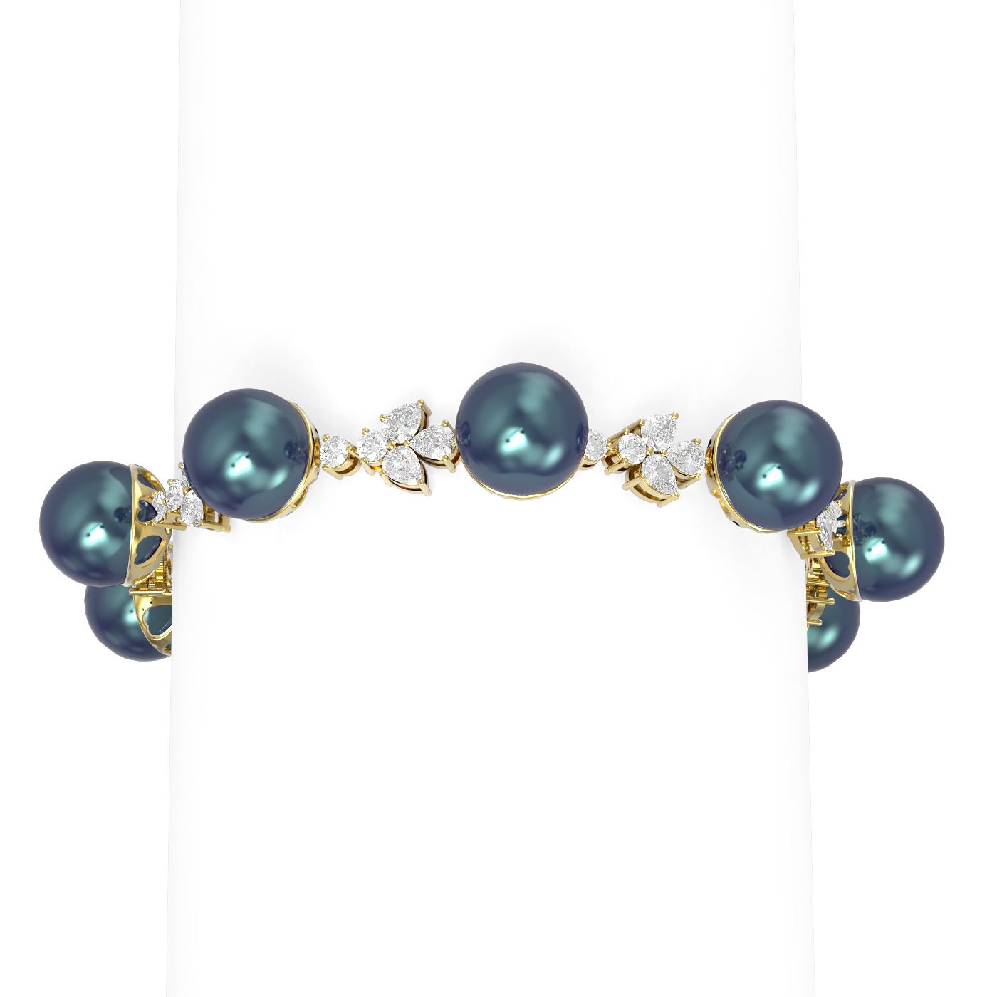 8.12 ctw Diamond and Pearl Bracelet 18K Yellow Gold