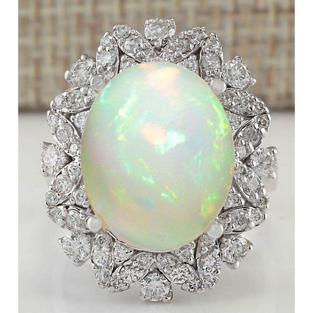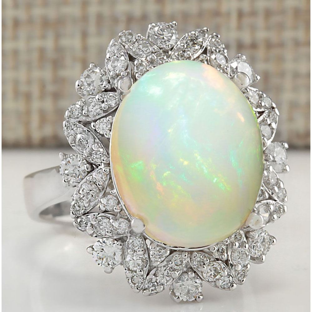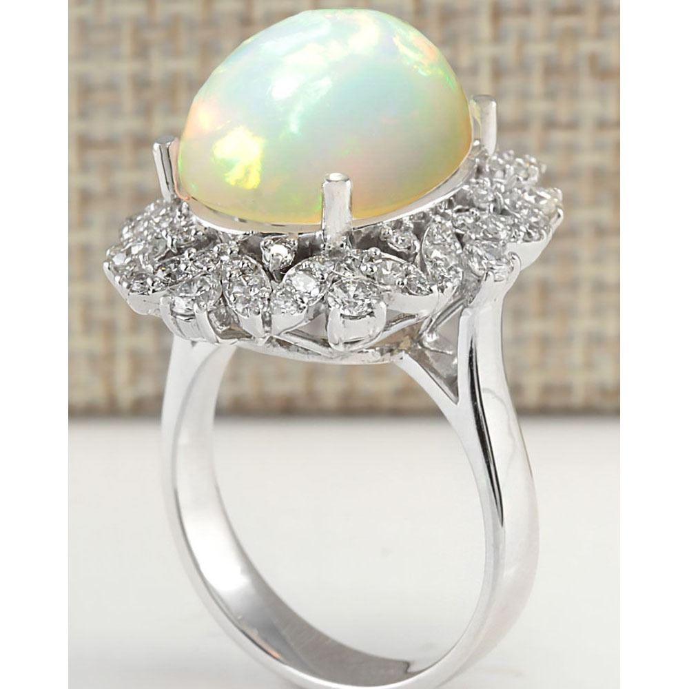 8.15 CTW Natural Opal And Diamond Ring In 14K White Gold