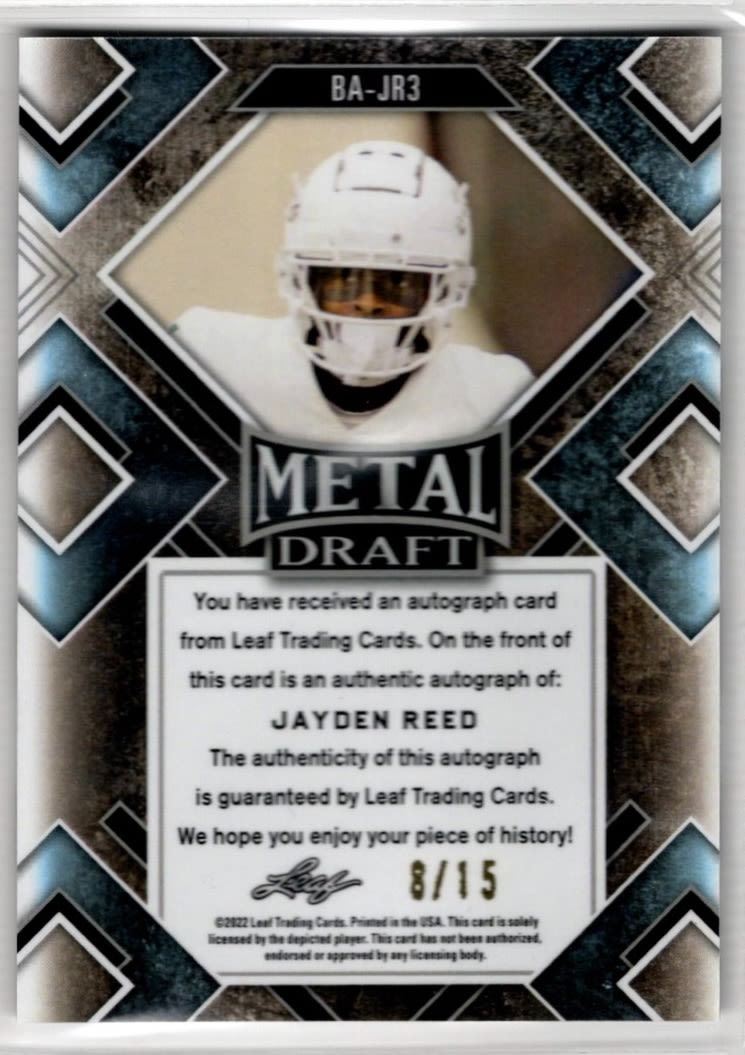 8/15!! Jayden Reed 2022 Leaf Metal Draft Auto #BA-JR3