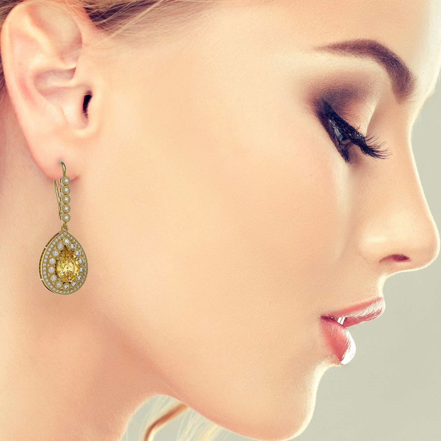 SKU: 43162 ---- 8.15 ctw Canary Citrine & Diamond Victorian Earrings 14K Yellow Gold