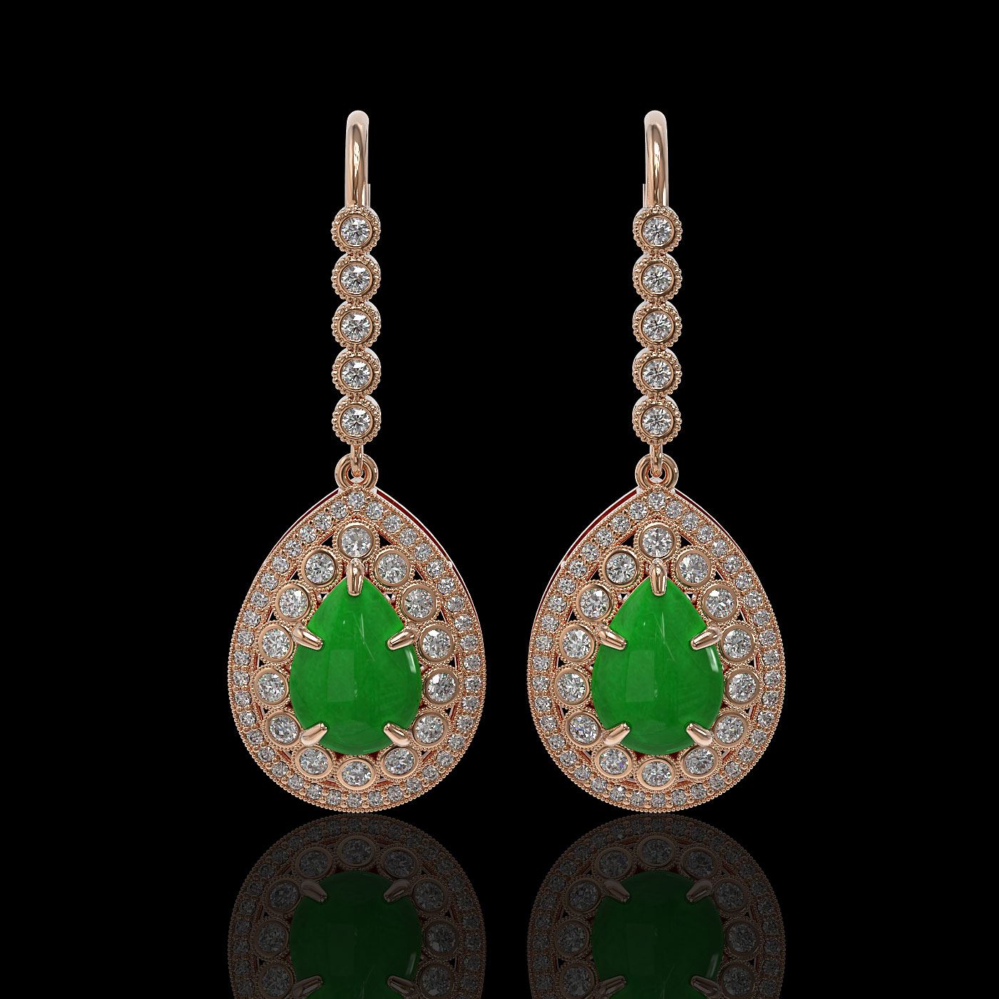 REF-241K6Y - SKU: 46150 ---- 8.15 ctw Jade & Diamond Victorian Earrings 14K Rose Gold