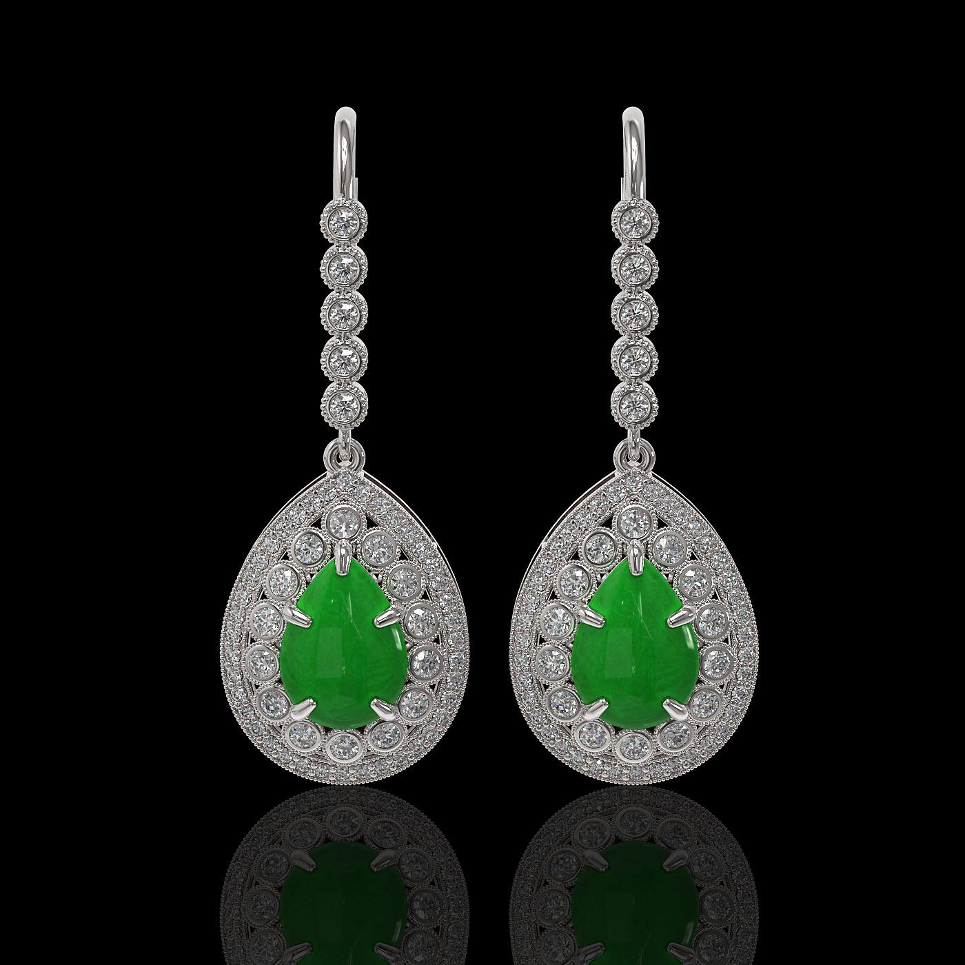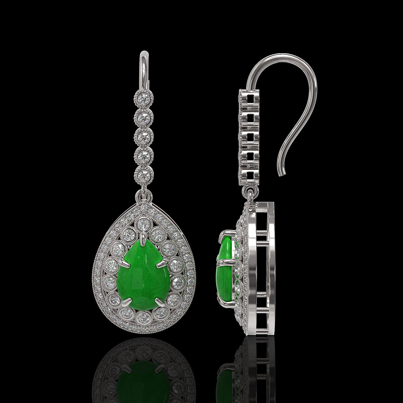 REF-241H6R - SKU: 46149 ---- 8.15 ctw Jade & Diamond Victorian Earrings 14K White Gold