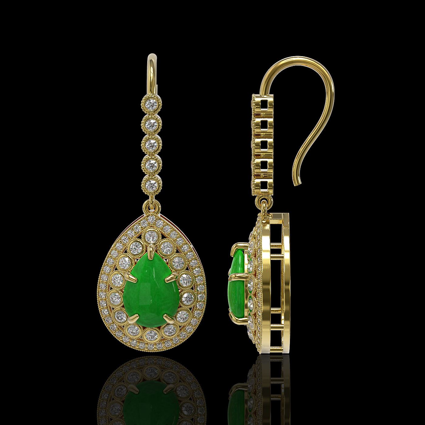 REF-241X6A - SKU: 46151 ---- 8.15 ctw Jade & Diamond Victorian Earrings 14K Yellow Gold