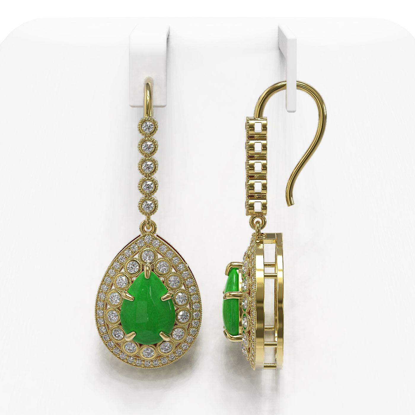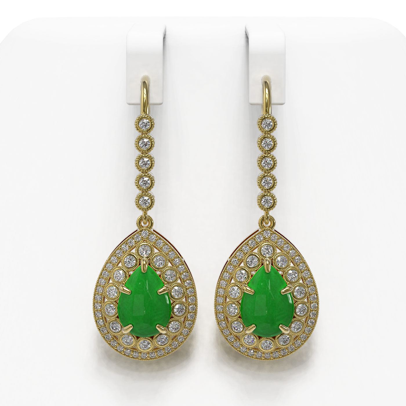 SKU: 46151 ---- 8.15 ctw Jade & Diamond Victorian Earrings 14K Yellow Gold