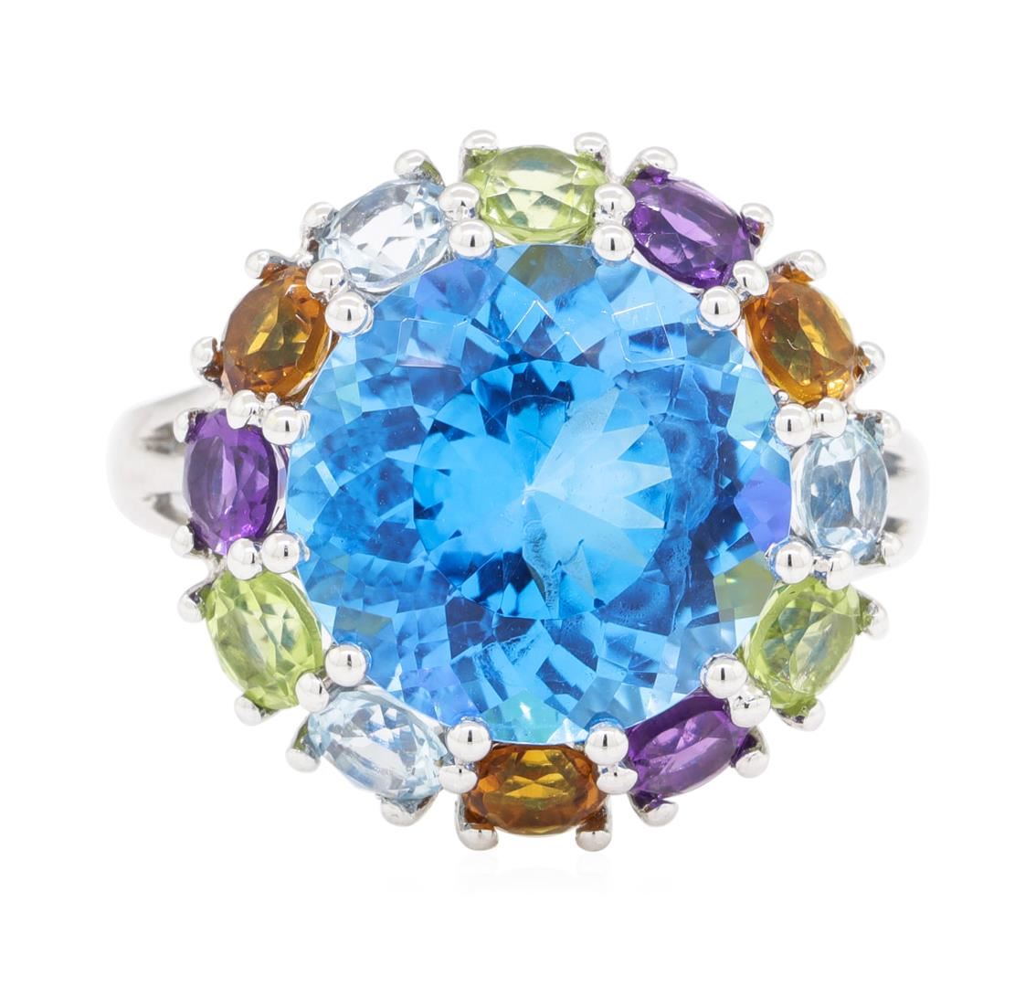 One lady's ring featuring: 14KT white gold weighing 5.3 grams containing semi-precious multi-colored gemstones weighing 8.16ctw.