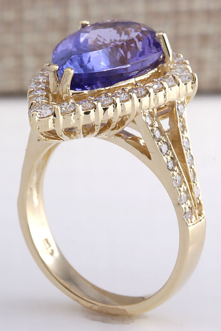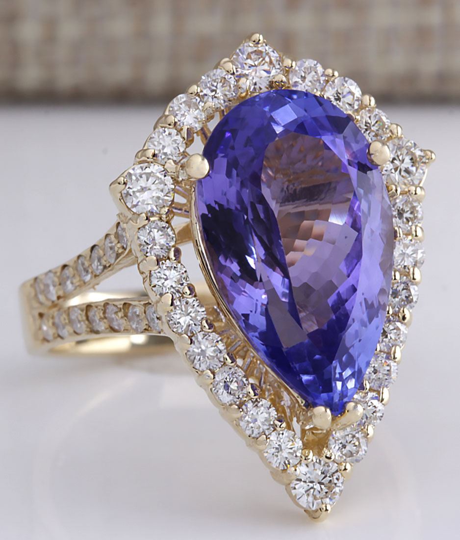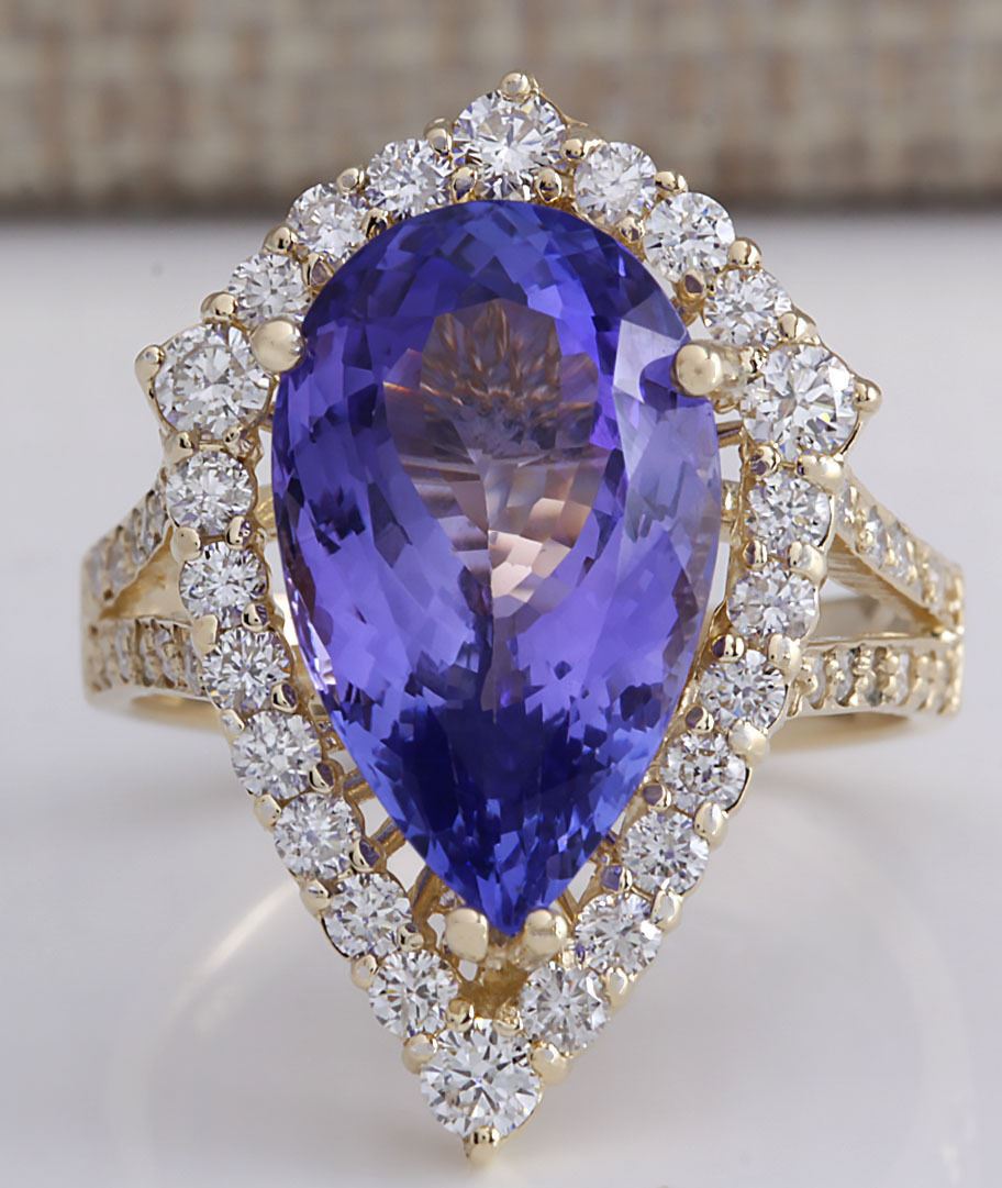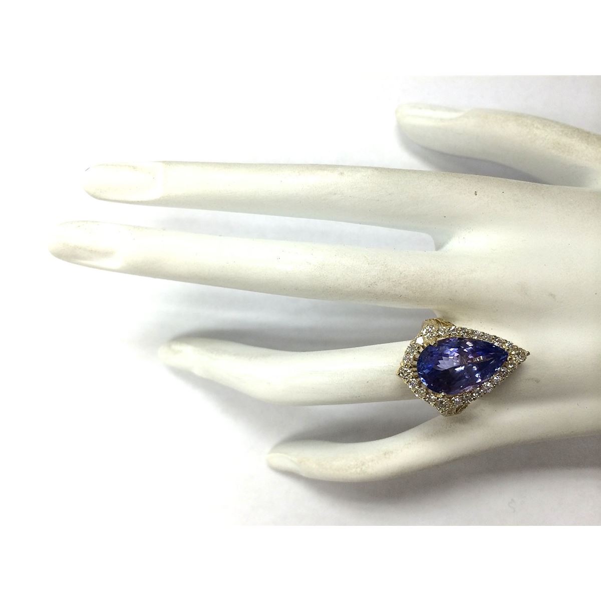 Stamped: 14K Ring Size: 7 Total Ring Weight: 6.7 Grams Diamond Weight: Total natural diamond weight is 1.01carat. SI1-SI2 clarity / G-H color Gemstone Weight: Total Natural Blue Tanzanite Weight is 7.15ctw (Measures: 16.50x9.62mm) Face Measures: 23.99x16.29mm Main stone color: Blue [SKU:702463]