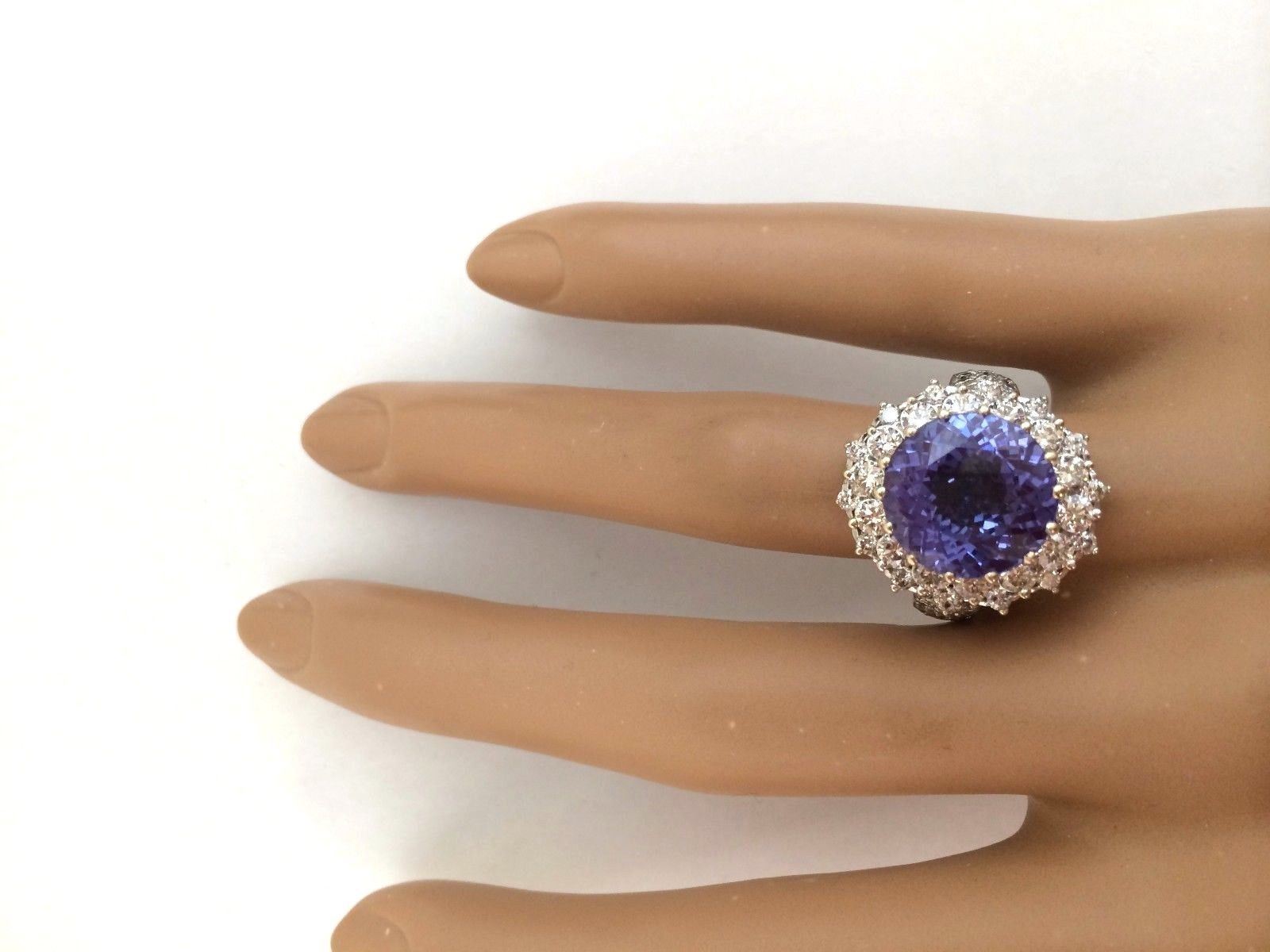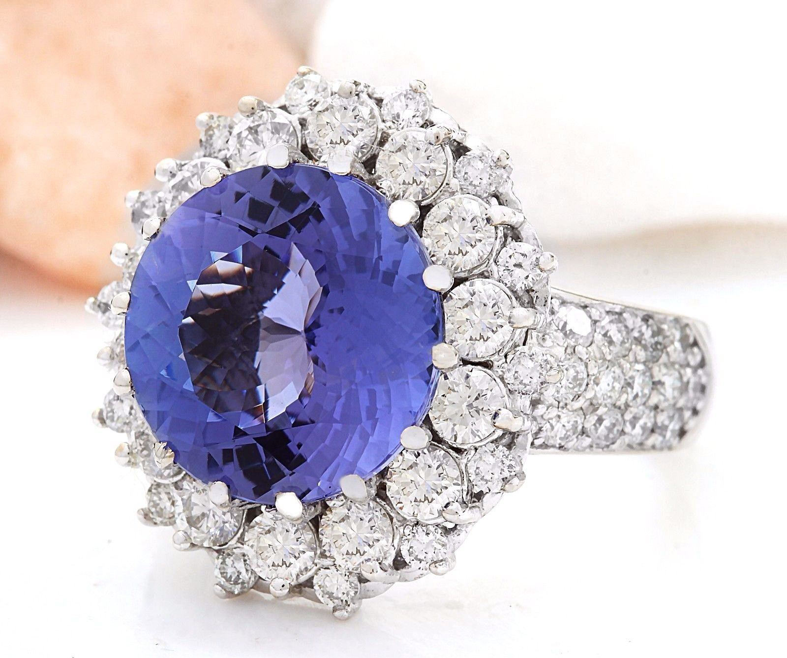 8.17 Carat Natural Tanzanite 18K Solid White Gold Diamond Ring