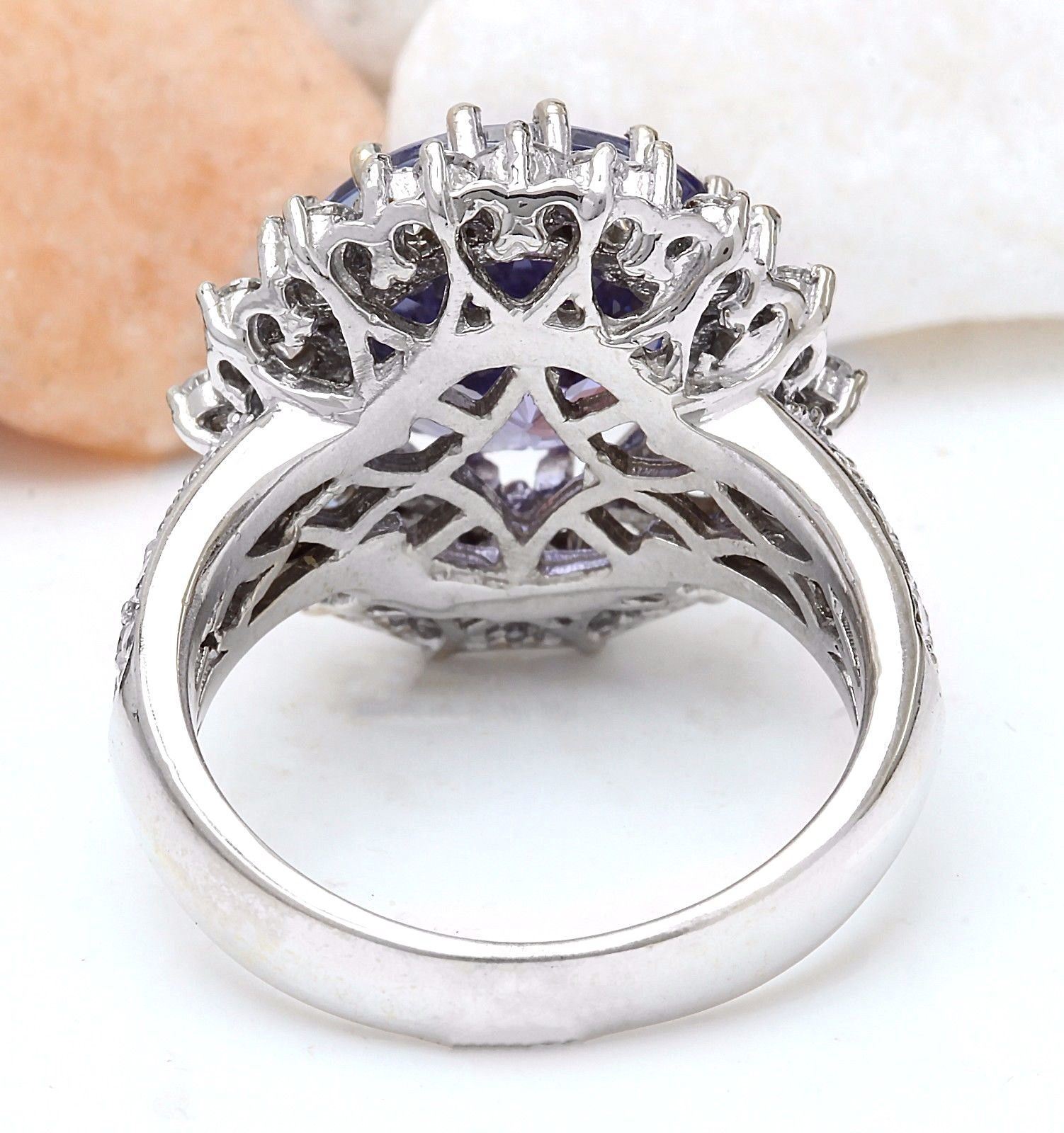 8.17 CTW Natural Tanzanite 18K Solid White Gold Diamond Ring