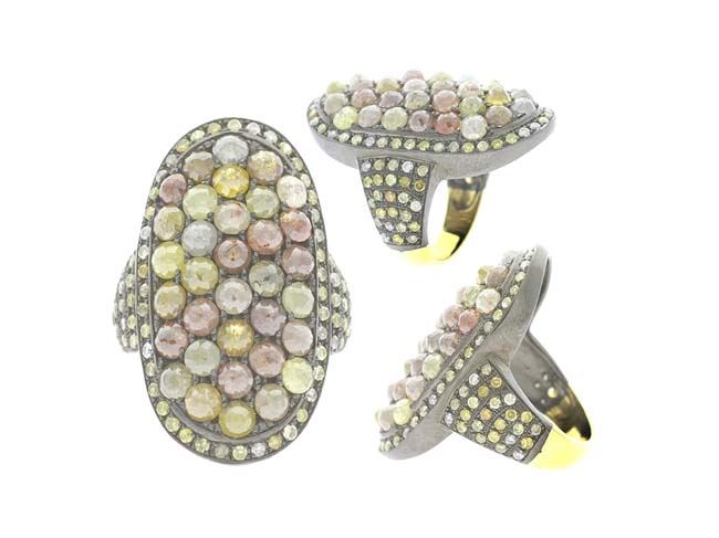 FANCY DIAMOND RING/Diamond Count 1:130 pcs Fancy /Diamond Total Carat :8.17/Diamond Color & Clarity:Fancy/I1-I2 /Diamond Count 2:/Diamond 2 CTW:/Diamond Count 3:/Gemstone Count 1:/Gemstone CTW:/Gemstone Dimension:/Gemstone Shape:/Gemstone Count 2:/Gemstone Shape:/Ring Dimension:/Metal Type 1:14kYellow Gold :Gram Weight:2.31/Metal Type 2:over0.925Sterling Silver / Weight Gram:8.95/Gross Weight :10.29/Ring Size:7