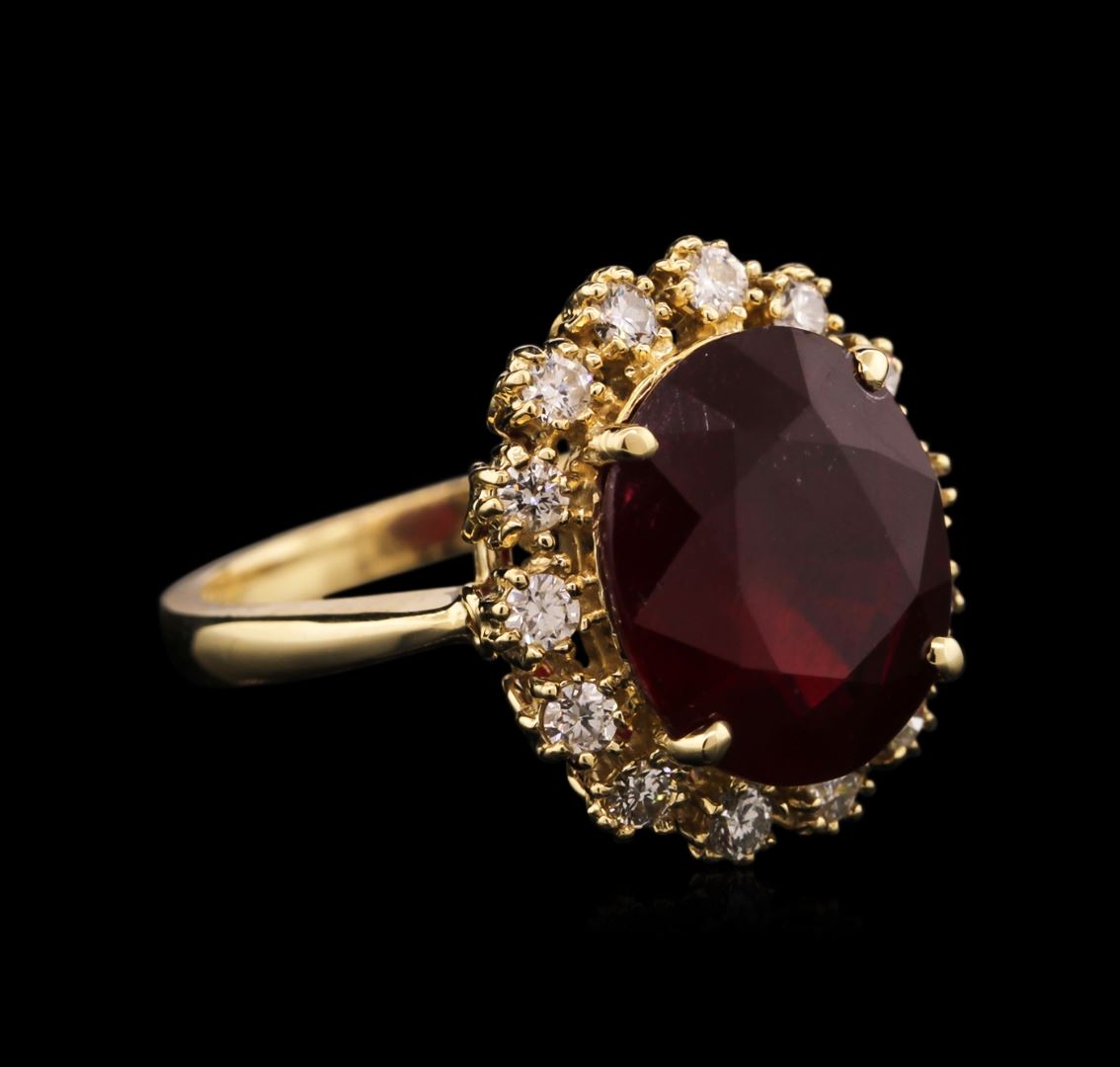 One ring featuring: 14KT yellow gold weighing 4.75 grams containing one ruby center stone with a total weight of 8.17ct and 14 diamonds with a total weight of 0.55ct.