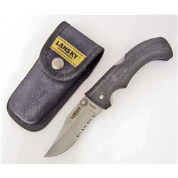 4 7/8" closed. Stainless partially serrated clip blade with dual thumb studs. Textured black rubber handles. Black nylon belt sheath.