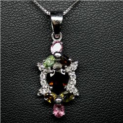STERLING SILVER FANCY COLOR TOURMALINE PENDANT WITH CHAIN